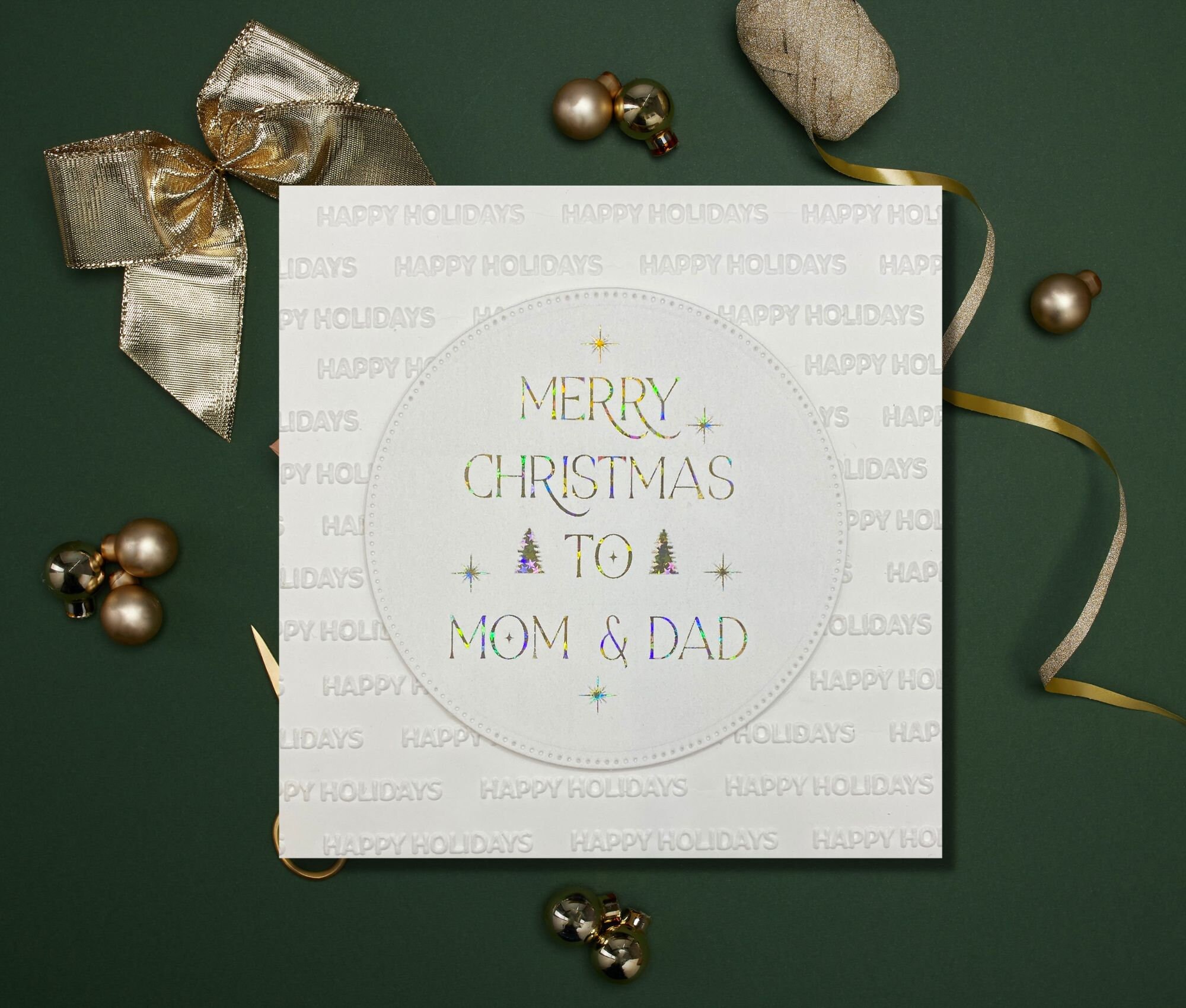This elegant handmade foil embossed Christmas card to your parents. mom and dad or just one parent is perfect to show just how much you love them! This card can be customized on the front and inside!