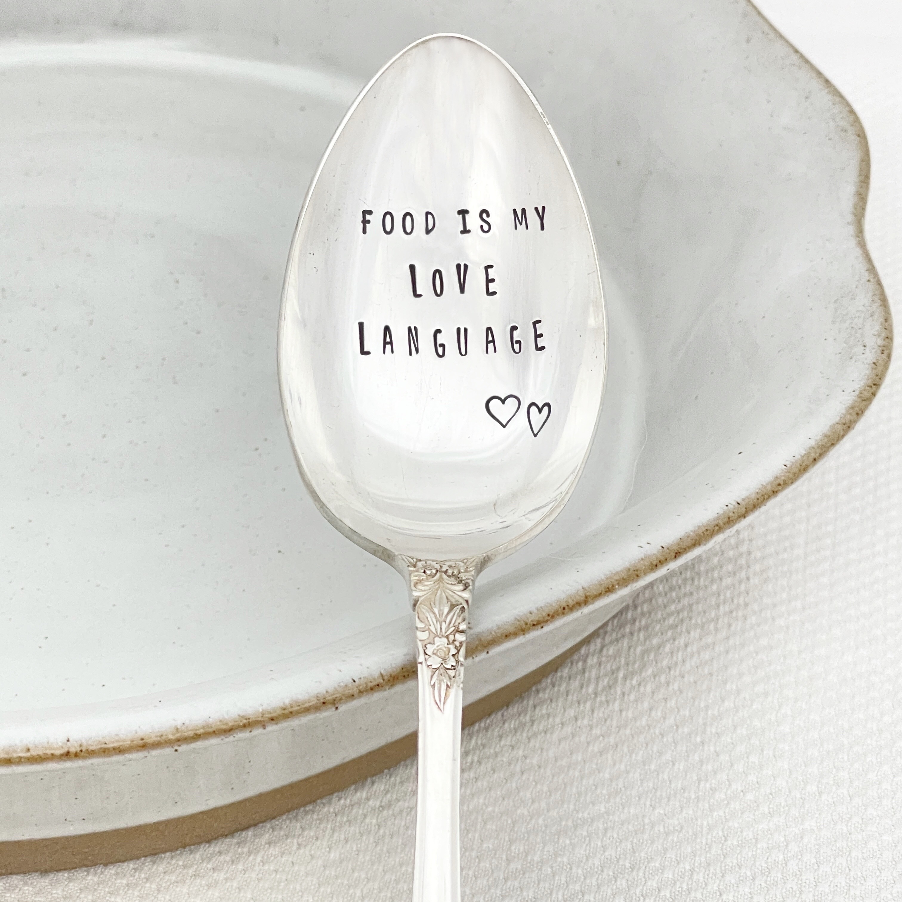 Because food is the ultimate expression of love. The first dinners in a new home, big family meals and going home to Grandma’s table - all are filled with love and food. This antique silver serving piece is hand stamped with the sentiment .. Food is my love language.