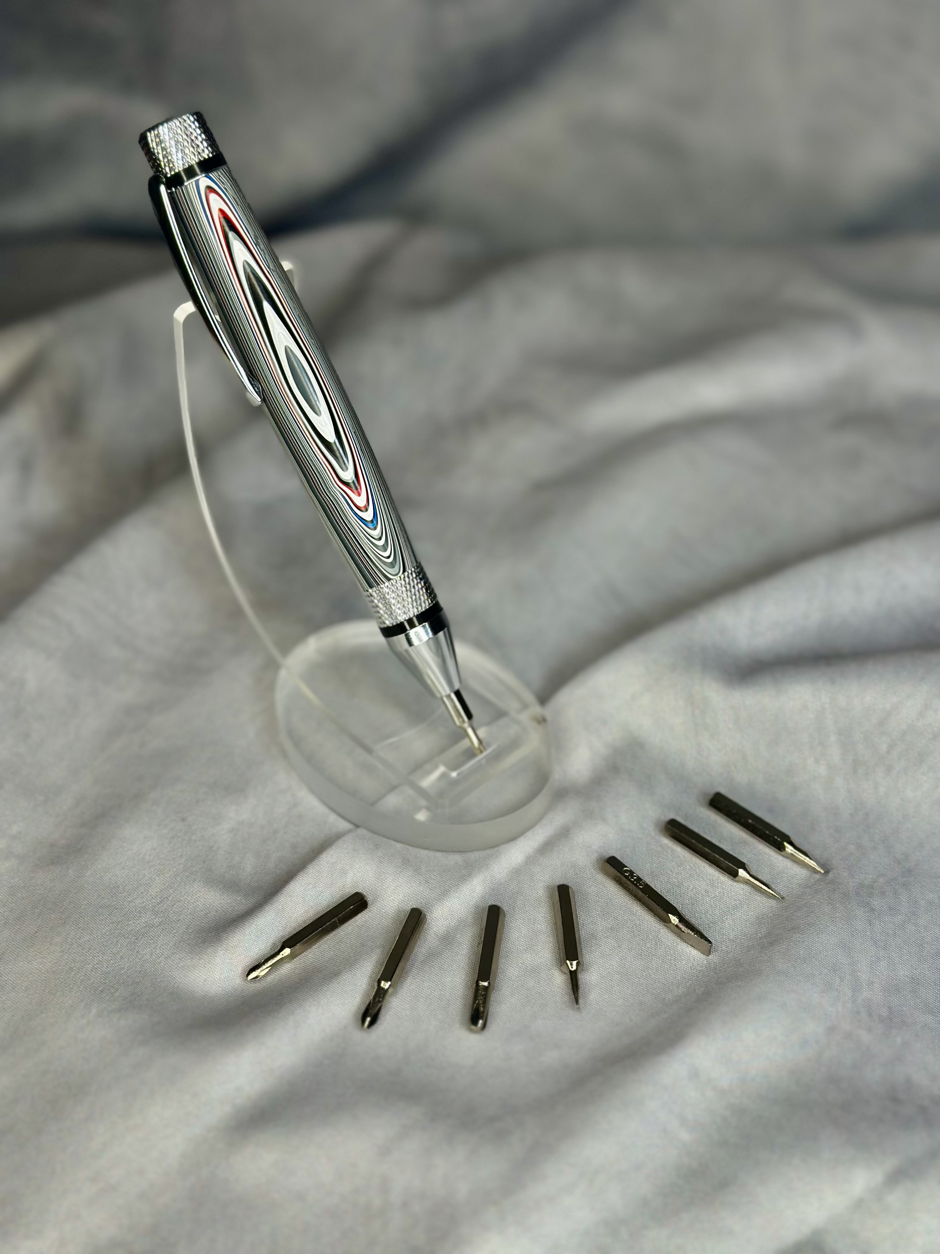 Whether you're a collector of rare materials, a Fordite enthusiast, or simply appreciate high-quality handmade tools, this multi-bit screwdriver will be a standout in your toolbox or desk.