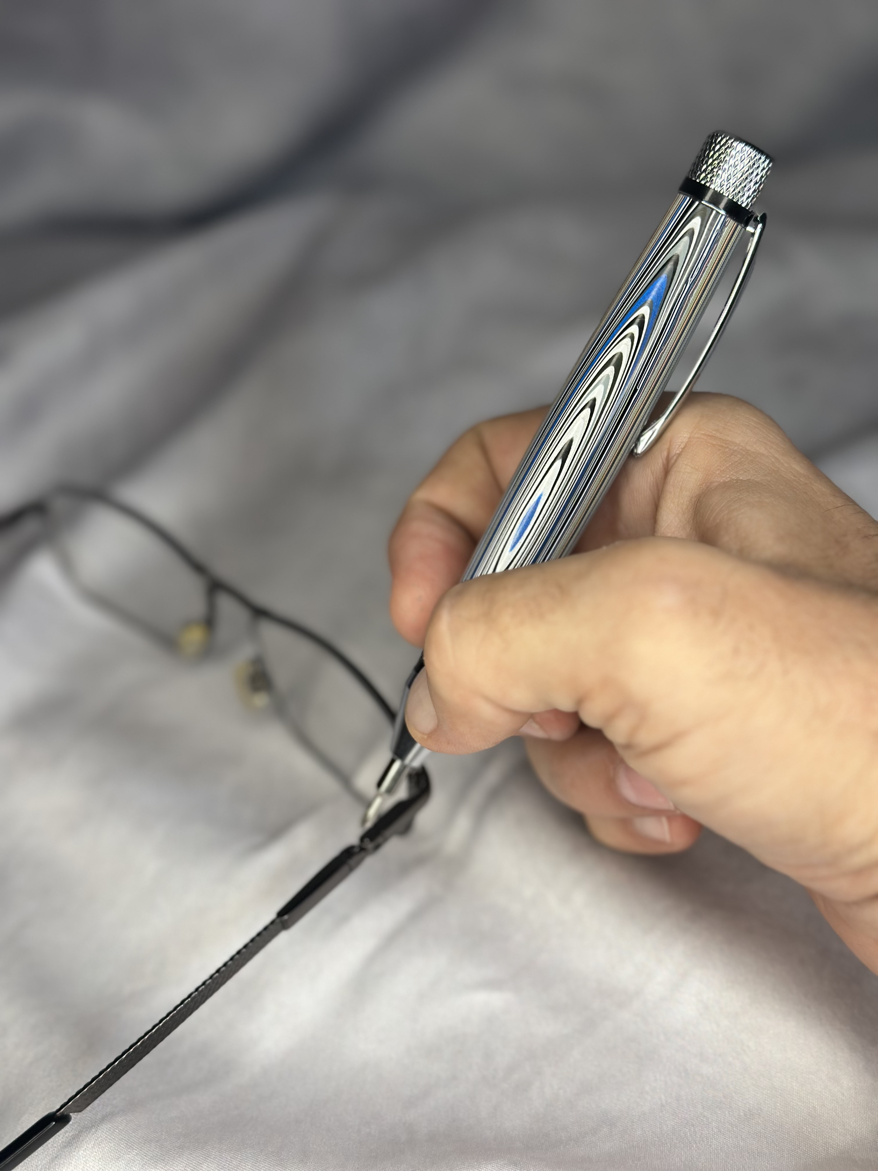 The tool includes 8 precision screwdriver bits stored securely in the magnetic bit holder. Perfect for quick fixes, glasses, electronics, and small household projects. The ergonomic design ensures a comfortable grip, while the Fordite makes this screwdriver truly unique – no two are alike.
