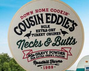 Fox has been embroidered onto off white twill. Back is left open and you can see the stitching.