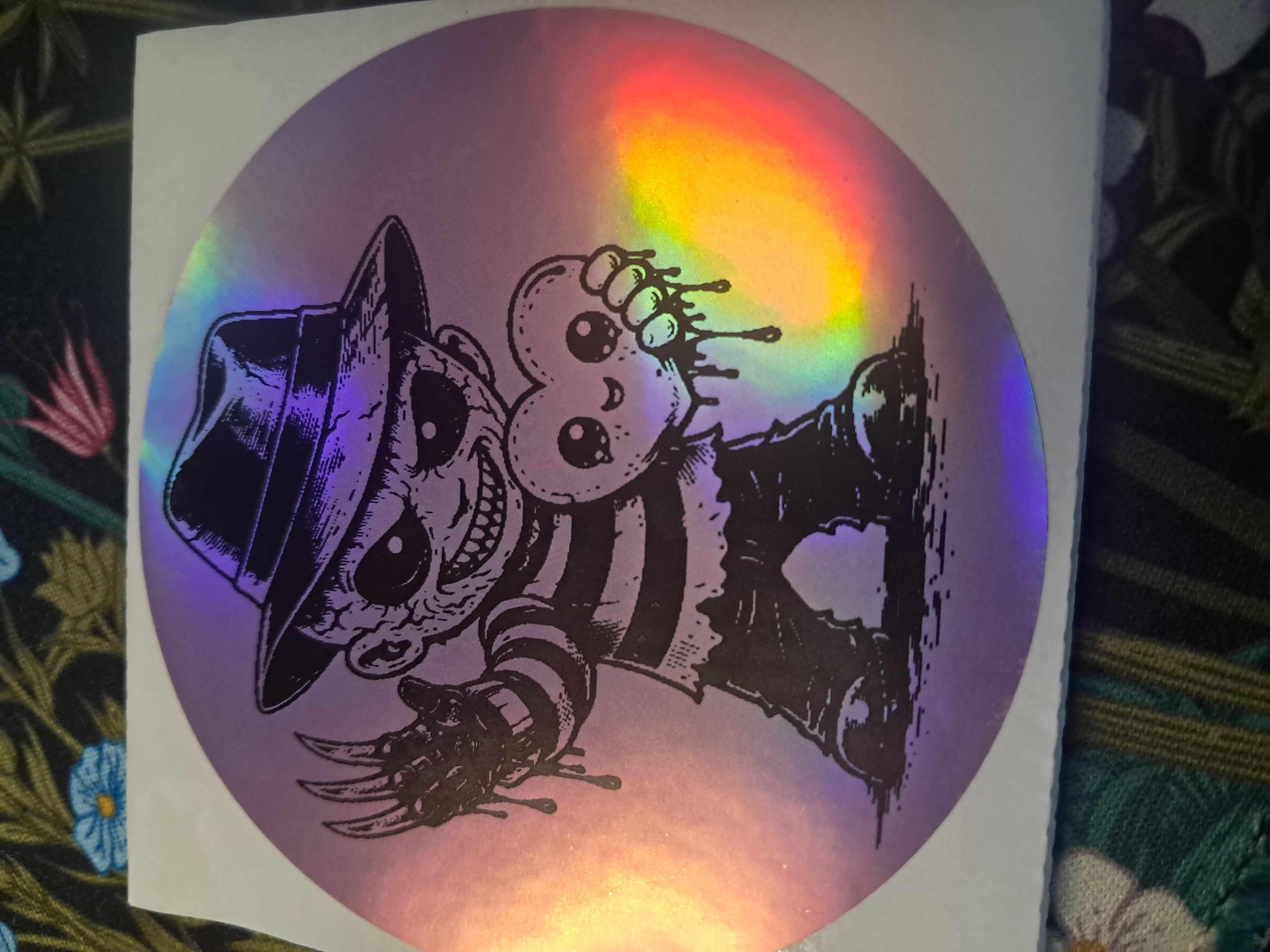 Add a little nightmare fuel to your collection with this creepy-cute Freddy-inspired holo sticker set! Each sticker features bold black-and-white artwork with holographic shine for extra spooky sparkle.