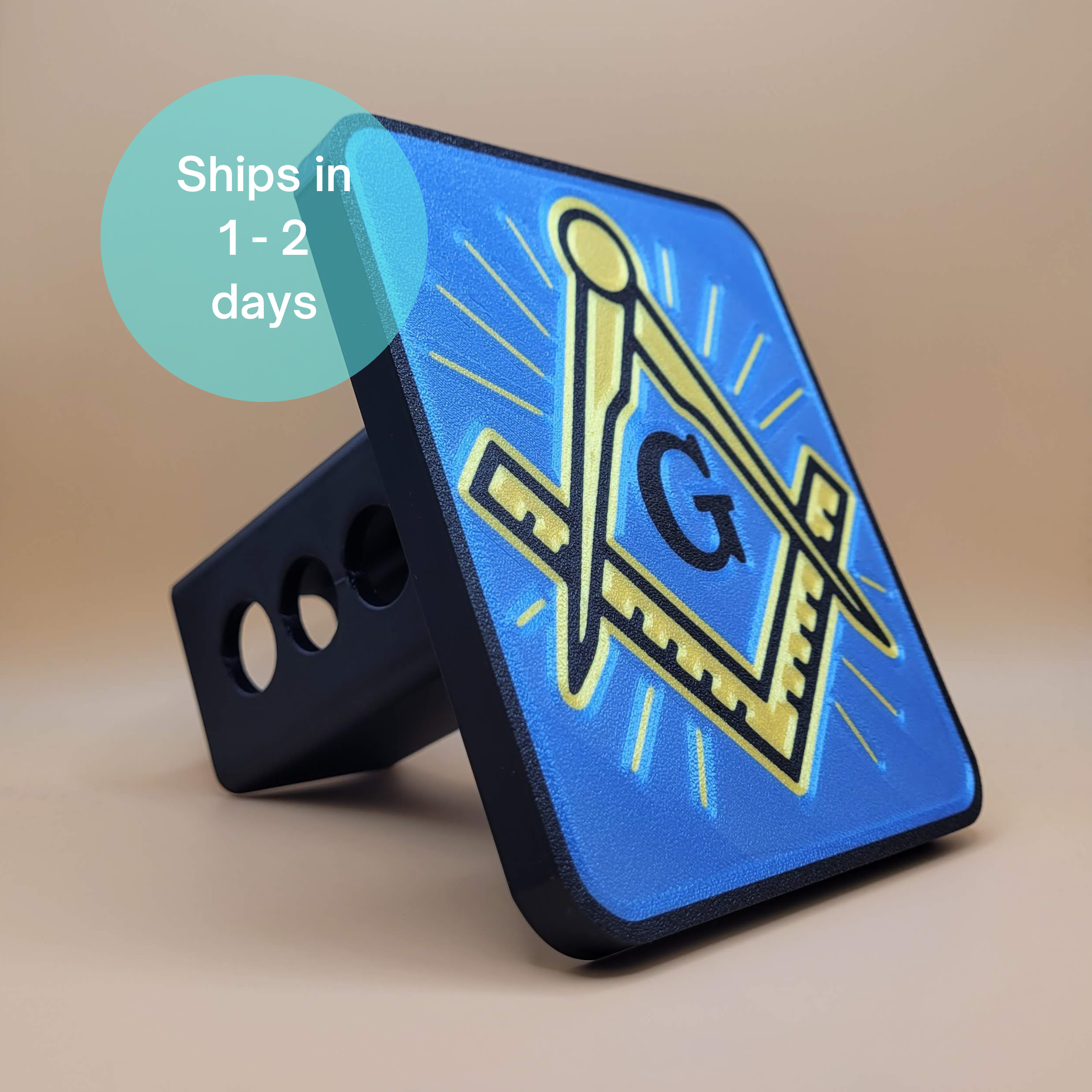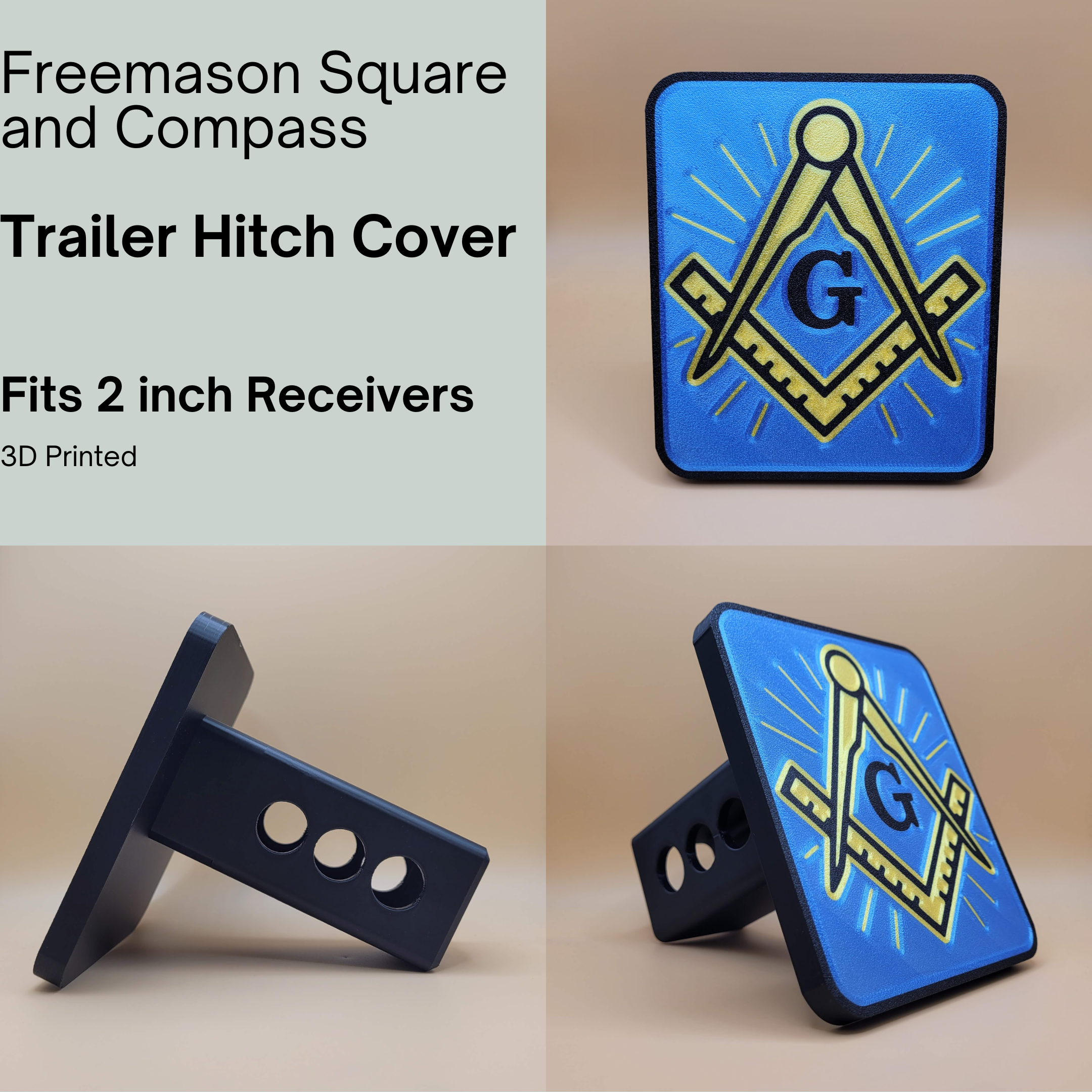 Show your pride with this Freemason Square & Compass Trailer Hitch Cover, designed to fit any standard 2 inch receiver. Crafted with sharp detail and vivid color, this hitch cover is perfect for Masons who want a meaningful, eye-catching accessory for their truck or SUV.