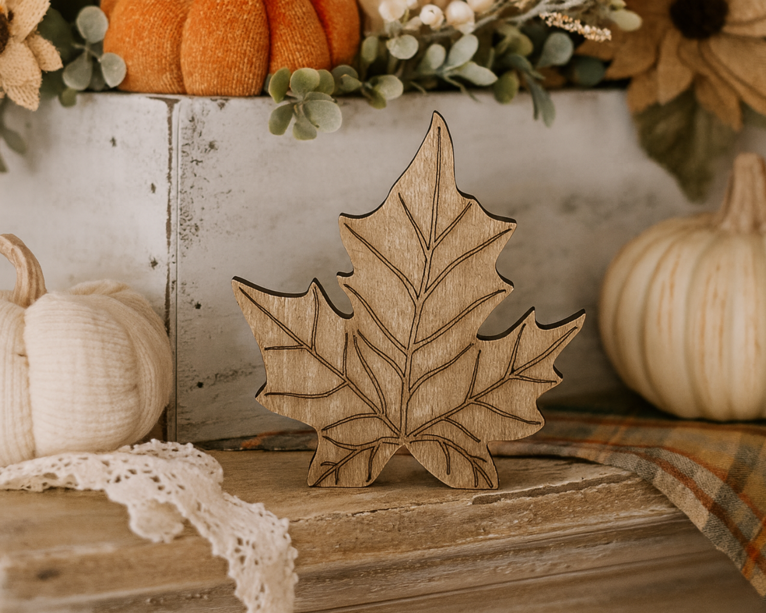 Add a touch of rustic fall charm to your home with these reclaimed wood leaves, thoughtfully crafted with engraved details that showcase their weathered, natural texture. Each piece is left unfinished for an authentic, rough-hewn look, making every leaf truly one of a kind. Perfect for farmhouse or cottage-style decorating, they bring a warm seasonal accent to tiered trays, shelves, mantels, or table displays. Sold individually, these leaves can be styled on their own for a simple statement or grouped together for a cozy, collected look that highlights the timeless character of reclaimed wood.