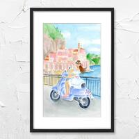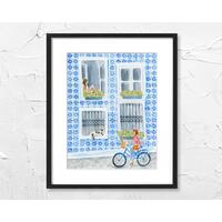 Colorful French Riviera wall art is a print from original watercolor of Mediterranean Coast. This European Art print will add color to your home or makes a great gift for your favorite travel lover.