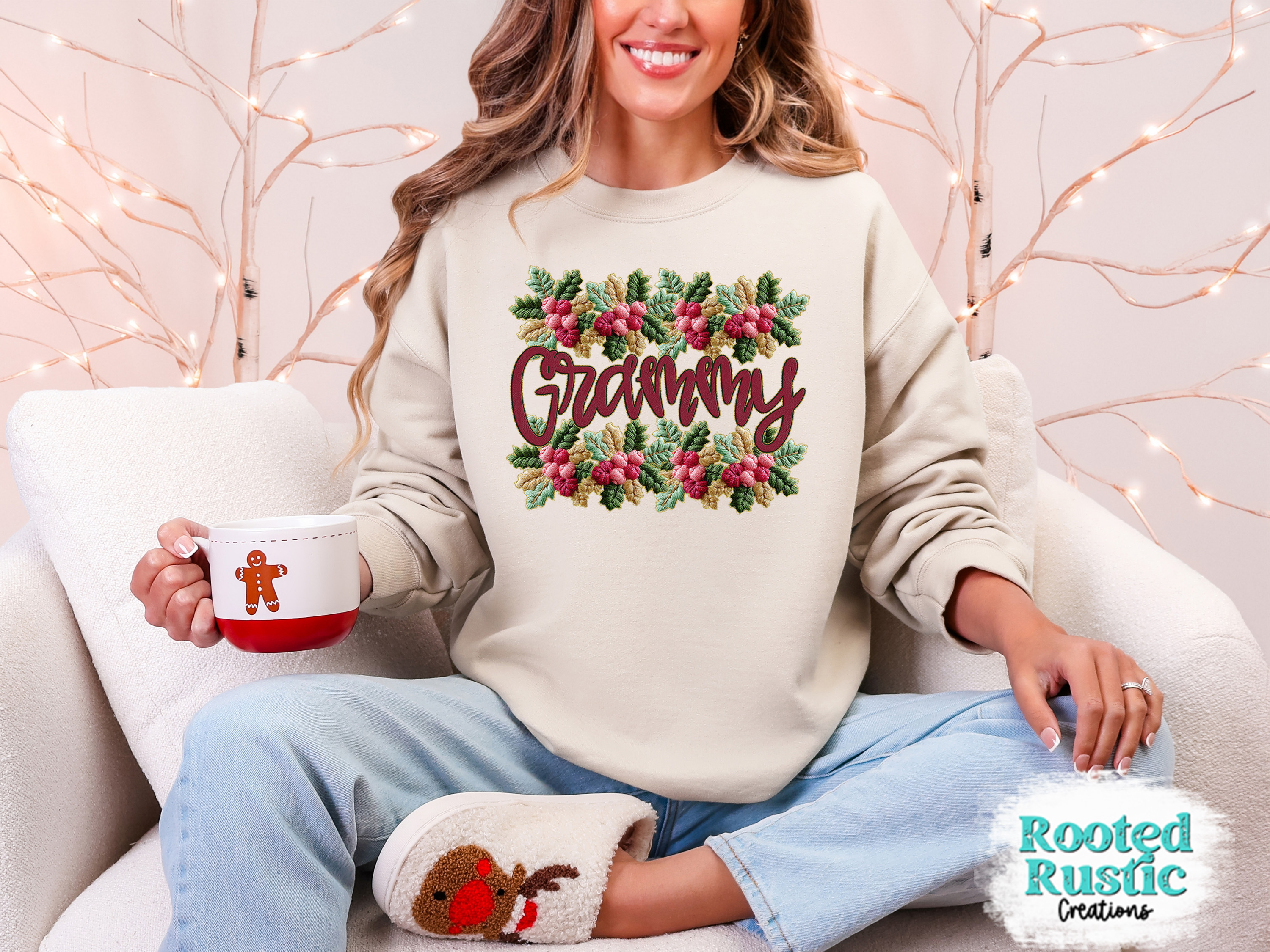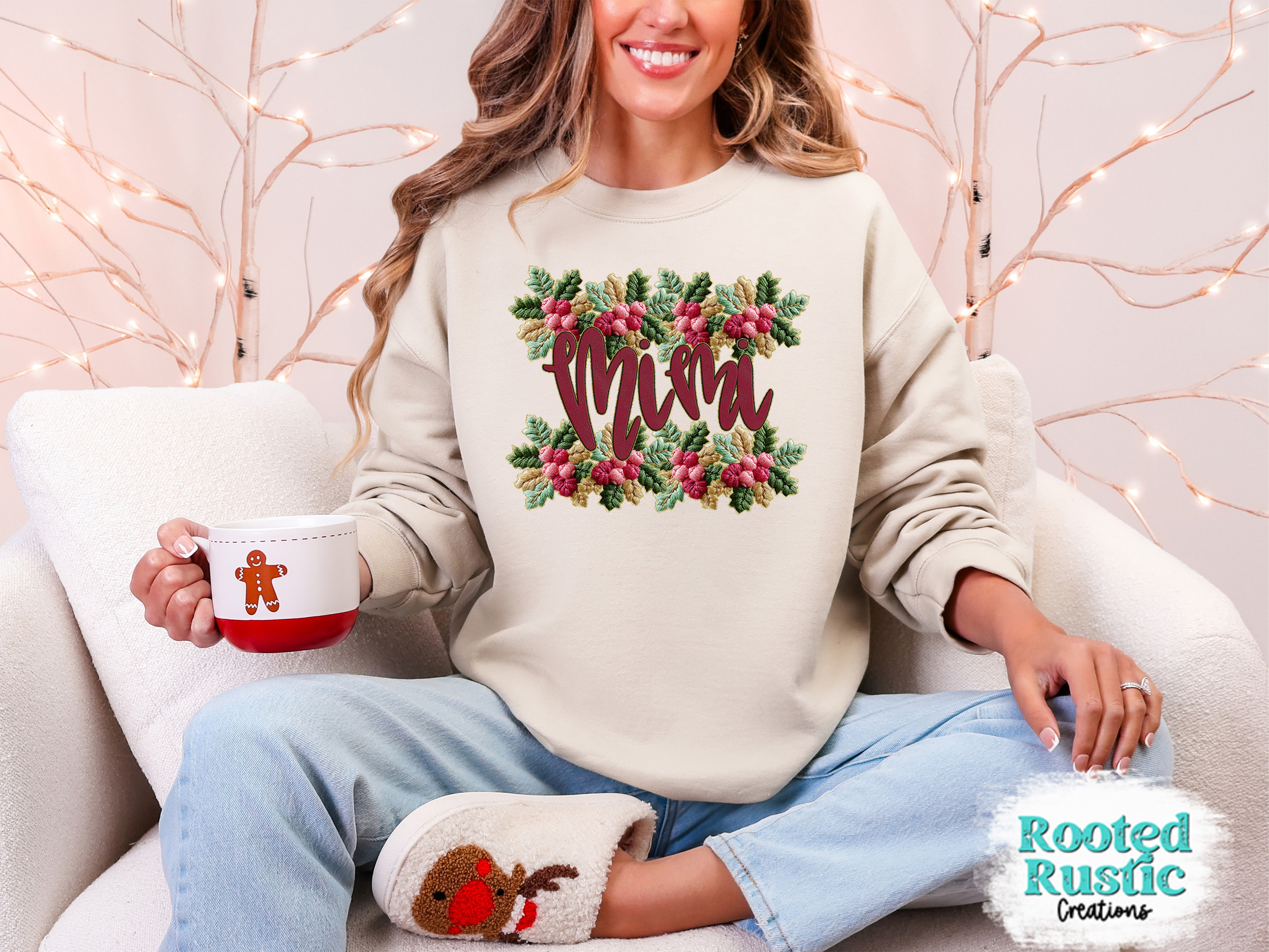 French Knot Holly Border Family Name Customizable - Shirt or Sweatshirt