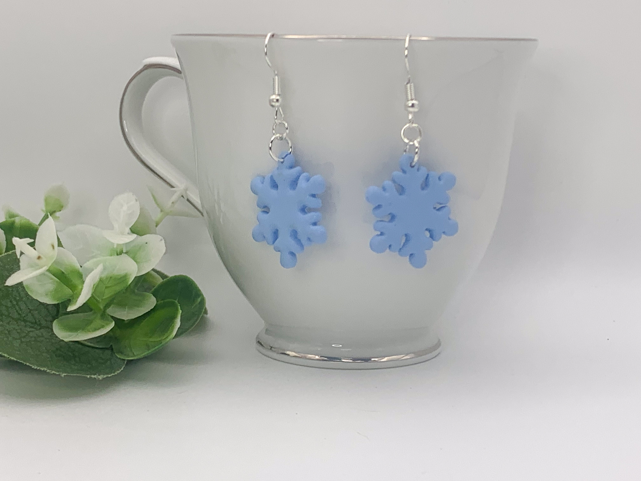 Celebrate the season with these icy blue snowflake earrings! Their cool tone and delicate design make them perfect for winter festivities.