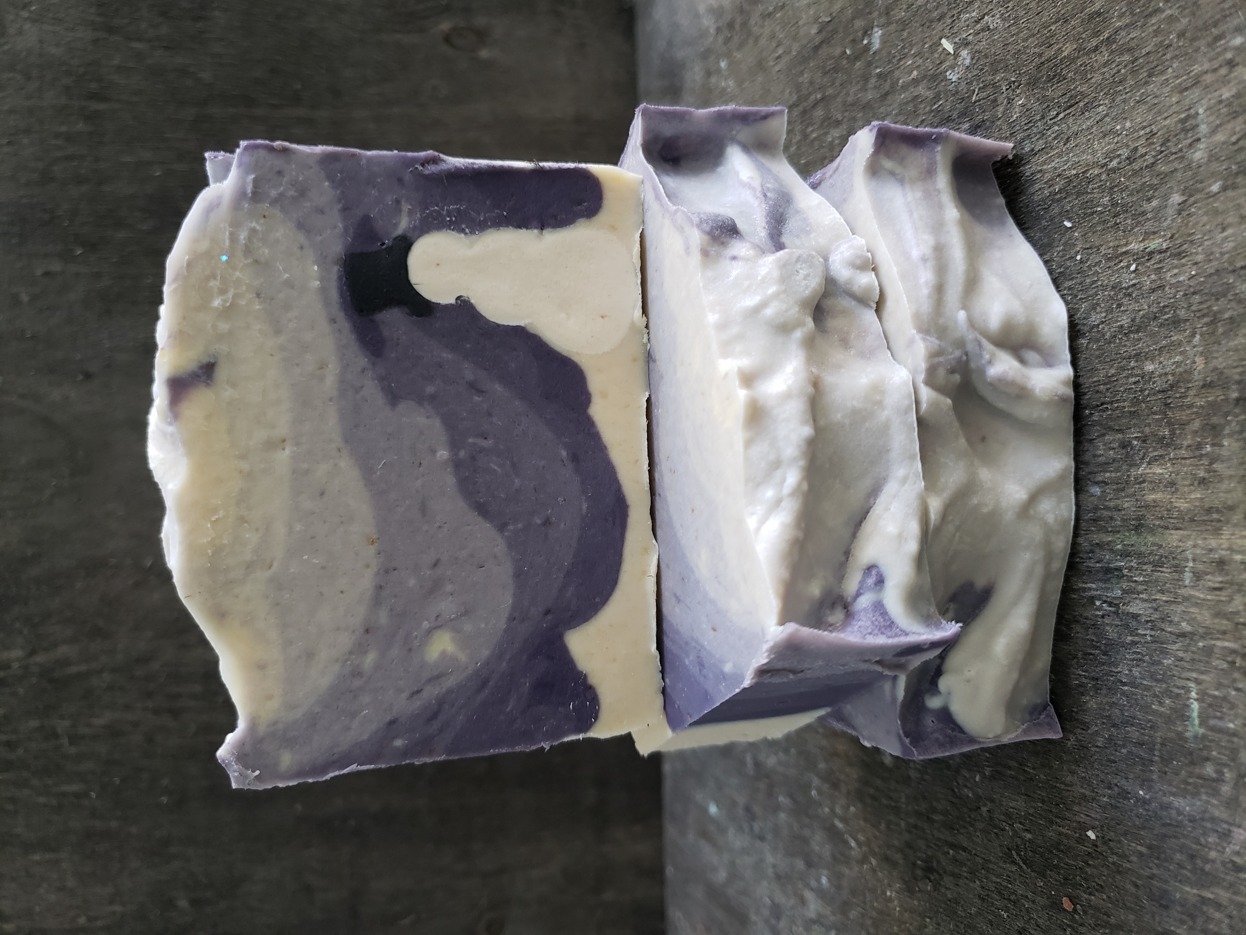 After handmilking our nubian goats, the raw, organic goat milk is combined with saponified olive oil, coconut oil, palm oil, shea butter and castor oil to produce luxurious bar soap.