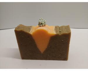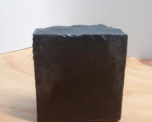 This soap is made using the cold process method wherein a lye solution is added to the oils and blended. Scent and additives are mixed in and it's poured into a mold where it goes through a process called saponification. Saponification is the chemical reaction of the lye water molecules binding to the oil molecules. When complete, there is no lye left and the end product is soap. The next day the loaf is removed from the mold and cut into bars and a bar is weighed. The soaps then cure, where any remaining water dissipates. The bar that was weighed that first day is weighed weekly. When fully cured, 4-6 weeks, the soaps are labeled, photographed and put up for sale.