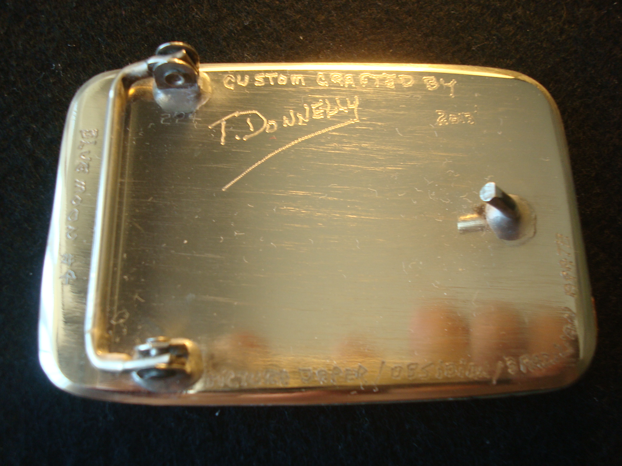 I have been making my buckles for approximately 45 years. I cut shape and polish all my pieces and fabricate my belt buckle backings using German silver or as it's also called nickle silver. German silver is not silver but an alloy comprised of nickle,brass, and zinc and I use it because it is stronger,less expensive and it doesn't tarnish as does silver. All my buckles take around 20 different steps to complete and the one's with silver insets take many more steps.