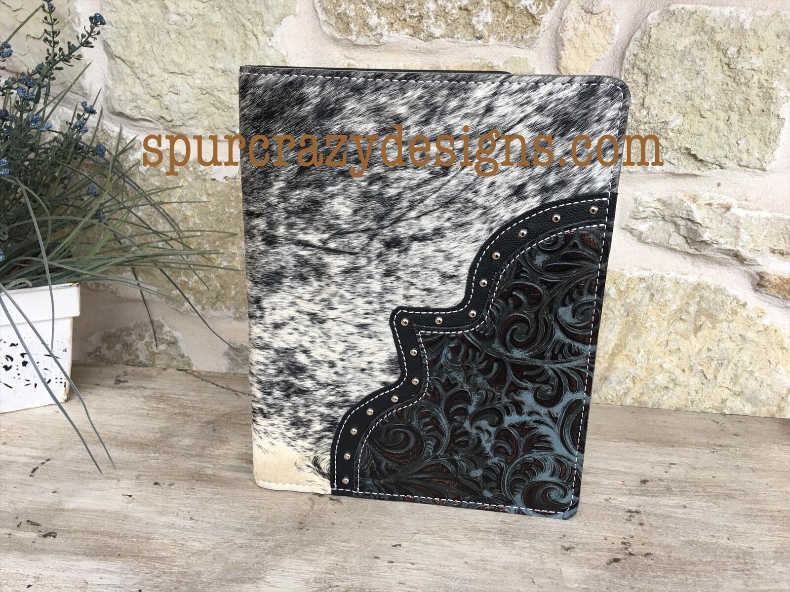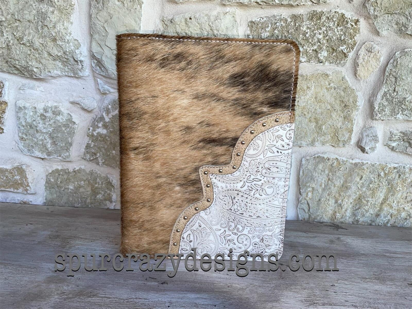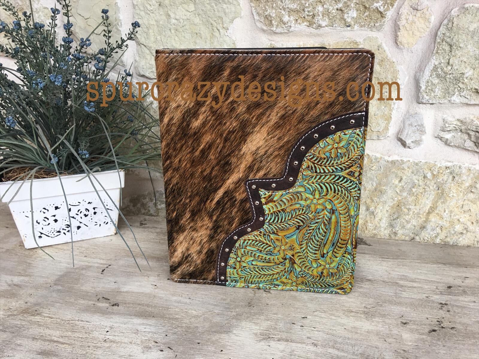 Includes legal pad. Cowhide and leather colors/patterns may vary item to item. I may make several portfolios using the same hide but the patterns may not be exactly like the picture. The front AND the back of the portfolio will be covered with cowhide and the embossed trim added to the back is an option.