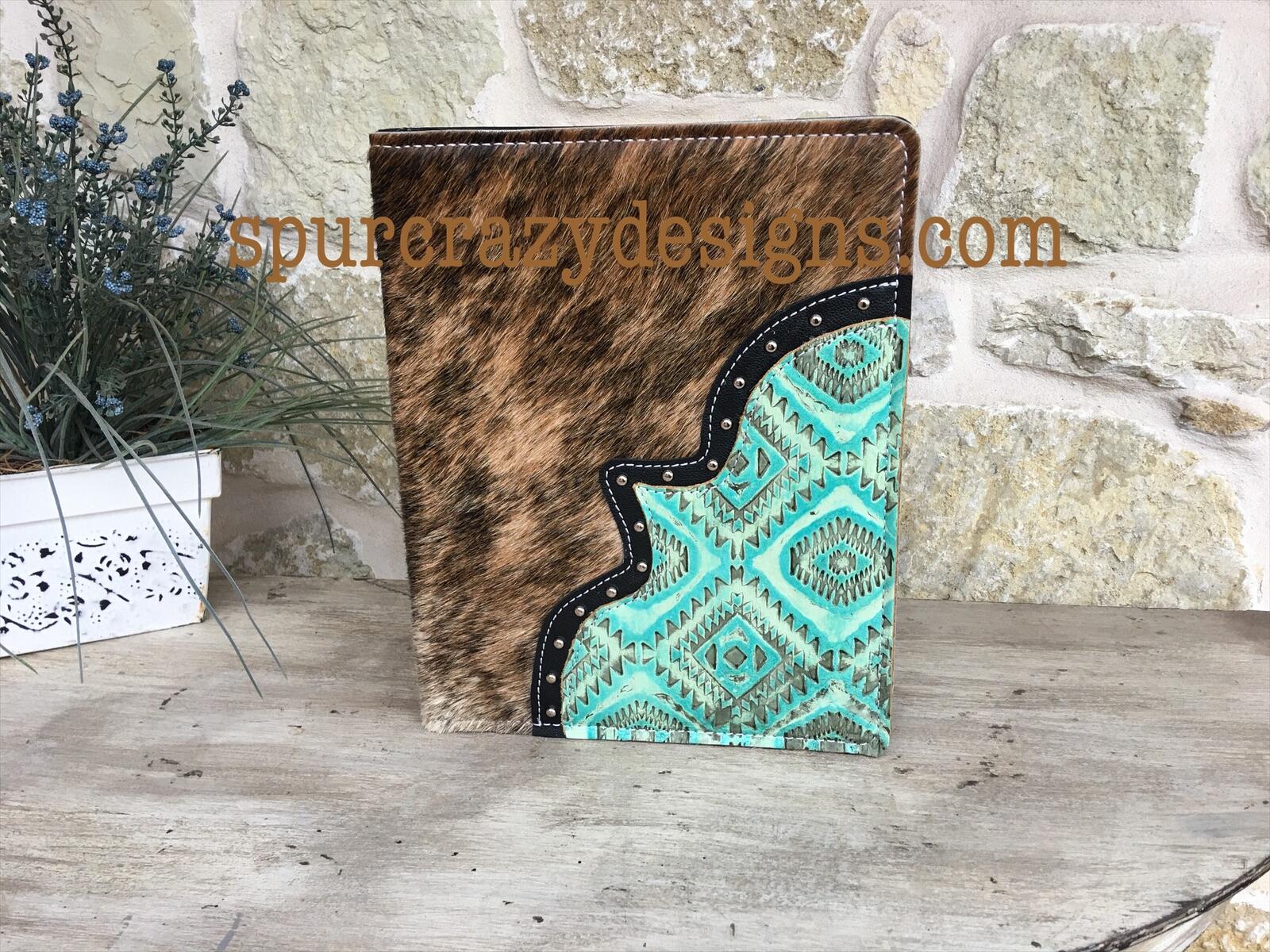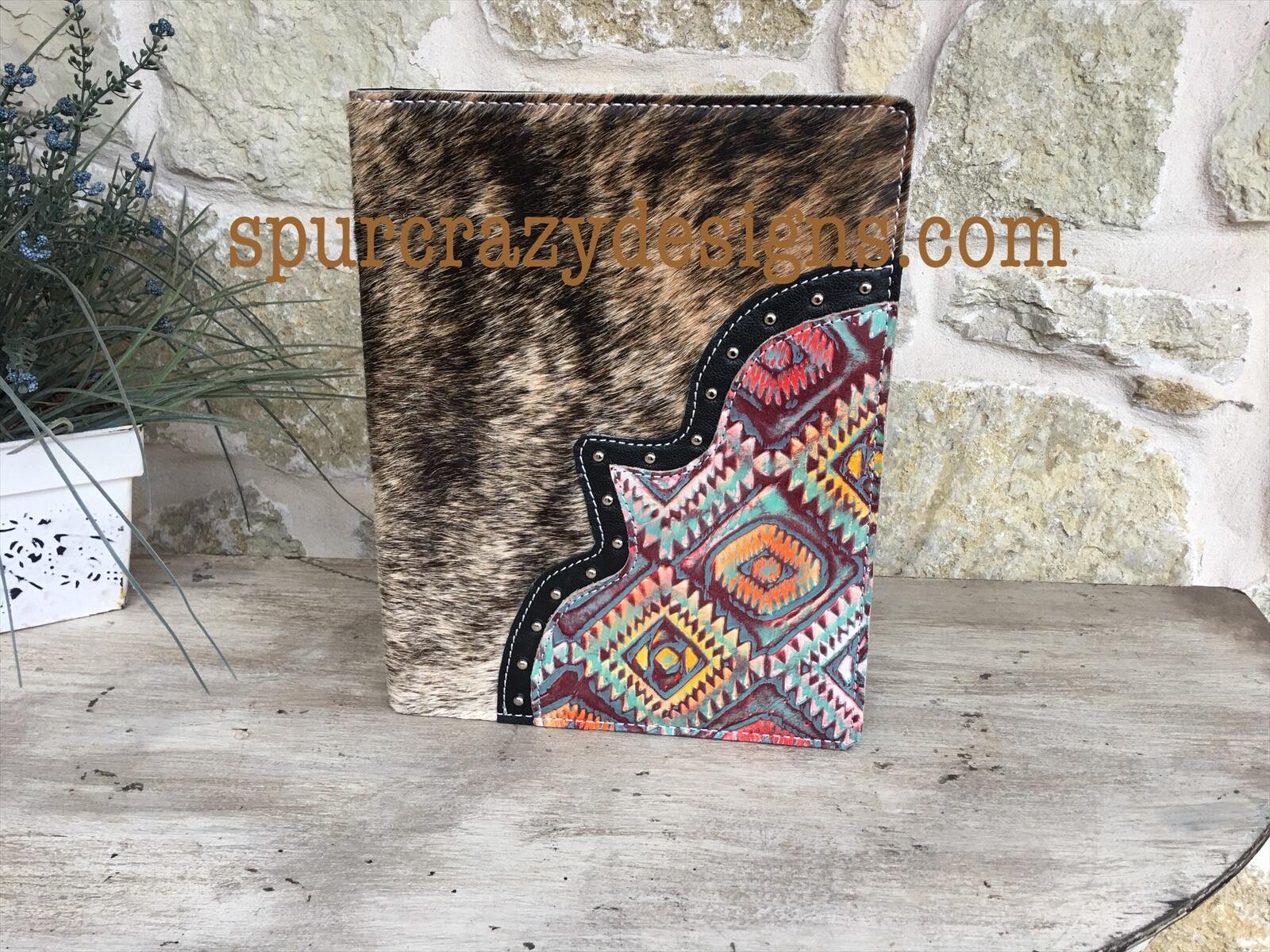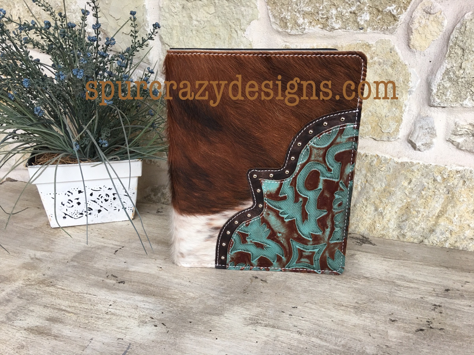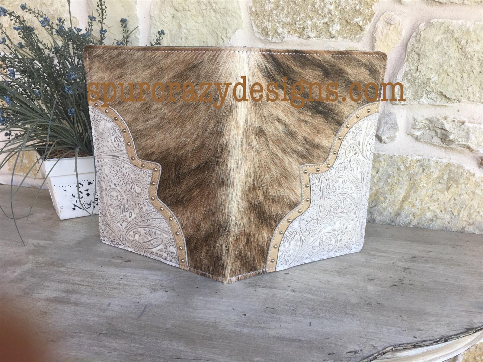 Includes legal pad. Cowhide and leather colors/patterns may vary item to item. I may make several portfolios using the same hide but the patterns may not be exactly like the picture. The front AND the back of the portfolio will be covered with cowhide and the embossed trim added to the back is an option.