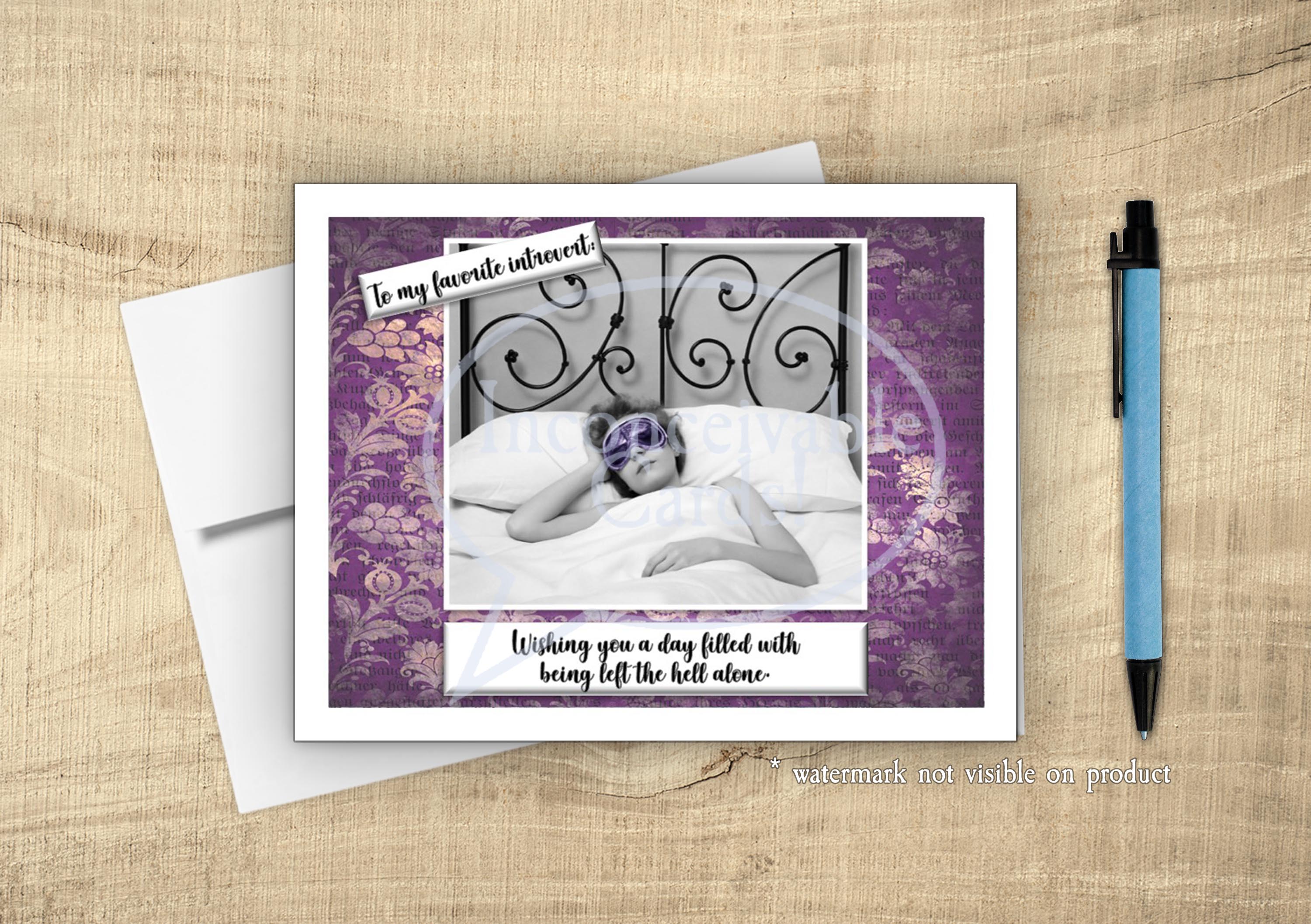 This card is the ultimate love letter to introverts — those brave souls who survive social gatherings just to earn a well-deserved nap. With vintage flair, dry humor, and a touch of sass, it’s perfect for birthdays, self-care celebrations, or simply validating someone’s lifestyle choice to not people.