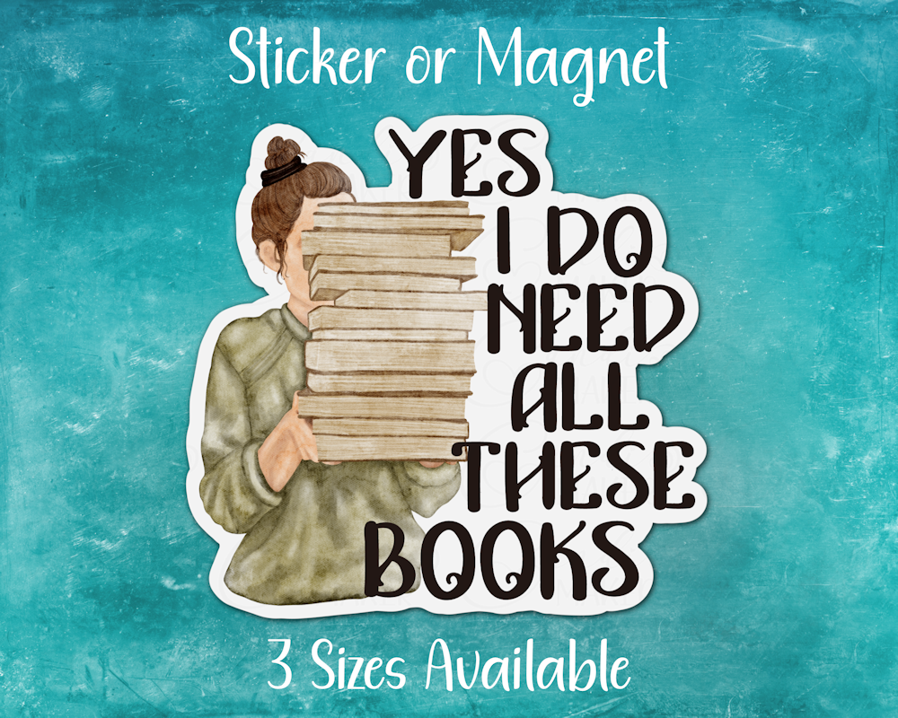 Funny Book Lover Sticker or Magnet | Yes I Do Need All These Books