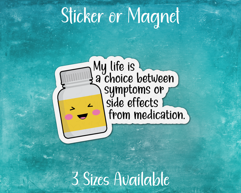 Funny Chronic Illness Sticker or Magnet | Life is a Choice Between Symptoms or Side Effects From Medication