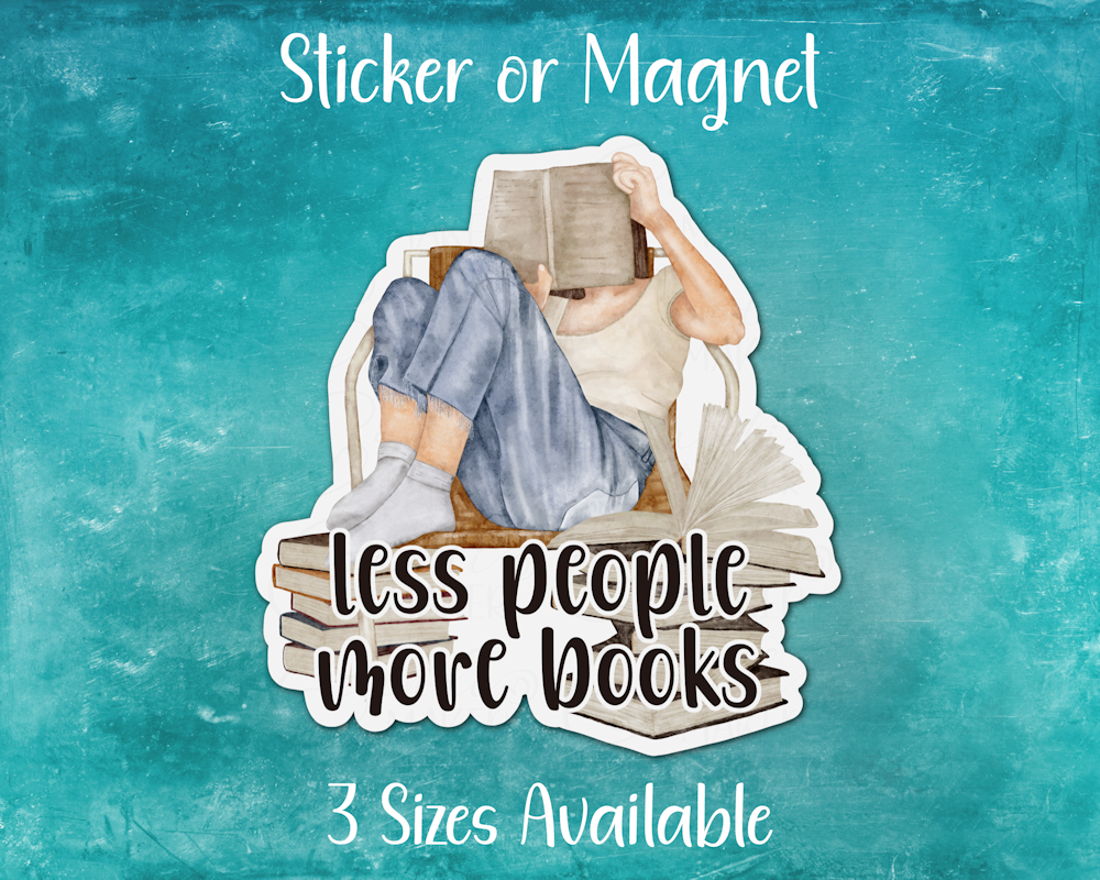 Funny Introvert Reading Sticker or Magnet | Less People More Books