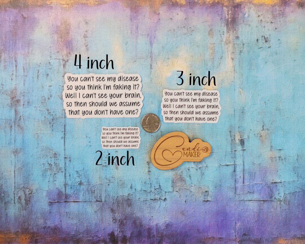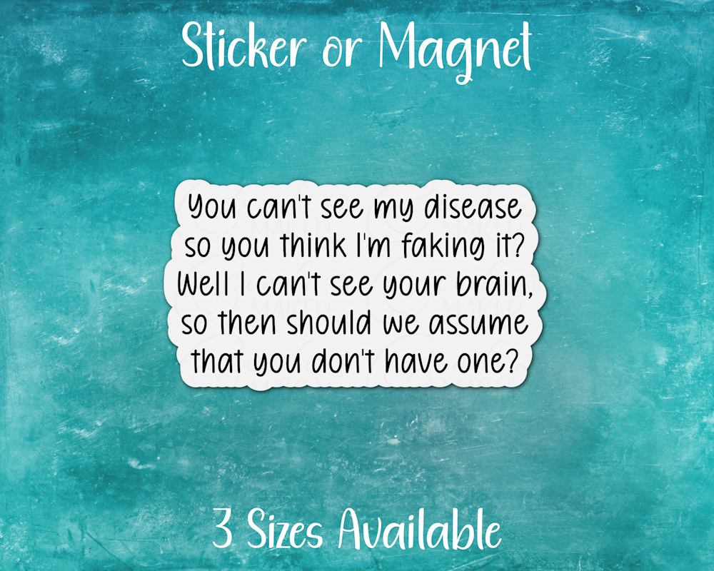 Funny Invisible Illness Sticker or Magnet | Can't See My Disease, You Think I'm Faking I Can't See Your Brain, Don't Have One