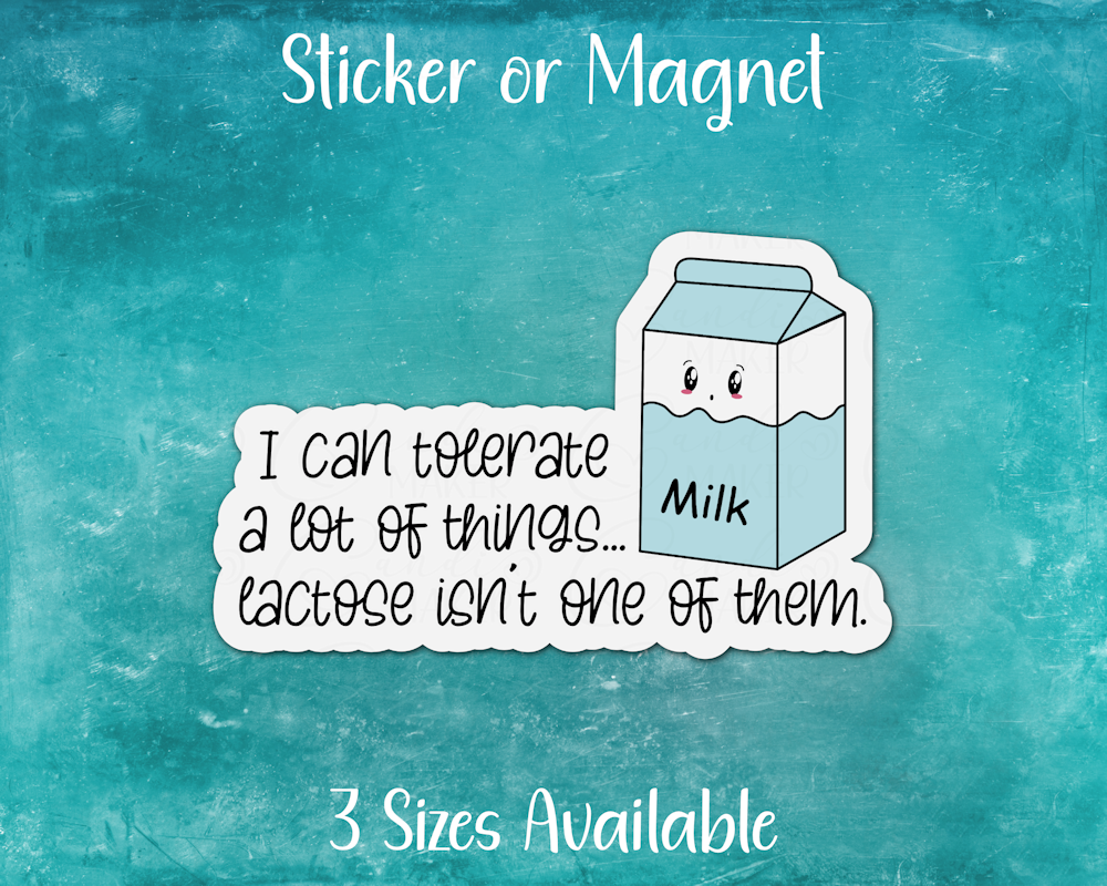 Funny Lactose Intolerance Sticker or Magnet | I Can Tolerate a Lot of Things... Lactose Isn't One of Them