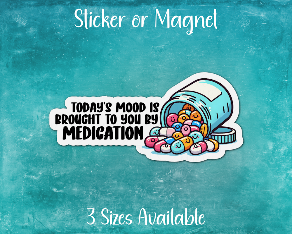 Funny Medication Sticker or Magnet | Today's Mood is Brought to You by Medication