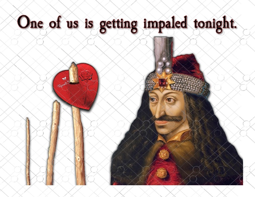 Romance is dead. So is everyone who crossed Vlad. Whether you're into dark humor, historical figures with boundary issues, or just want to spice up your Valentine's Day with a little suggestive violence, this card stakes its claim on being the most unhinged love note in circulation.
