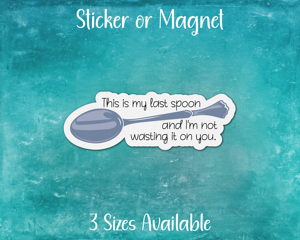 Funny Spoon Theory Sticker or Magnet | This is My Last Spoon, I'm Not Wasting It on You