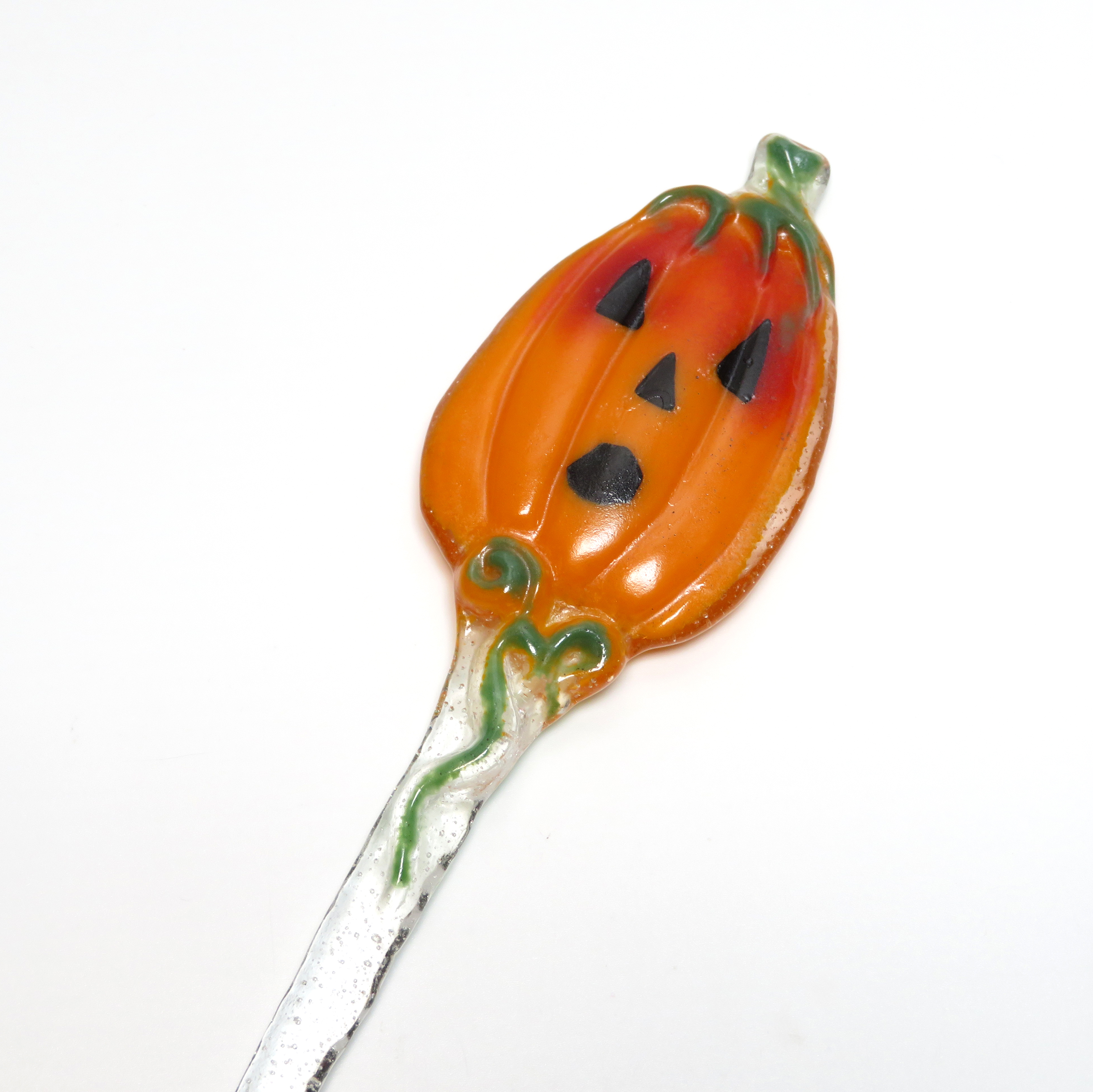 Add a touch of spooky charm to your plants with this handcrafted fused glass pumpkin planter stake! Featuring a cheerful jack-o’-lantern face with bright orange and green details, this unique Halloween decoration is perfect for flower pots or the garden. A fun way to dress up your plants for fall, or give as a thoughtful seasonal gift.