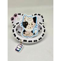Please note that these pacifiers are for adults only. These are not suitable for babies or children. Please do not buy them for children. Teat/nipples are way too large for children and are handmade, which means small pieces are used to decorate them. Please keep in mind pacifiers may be blemished, they are handmade and can have a bit of extra adhesive, please hand wash your pacifiers and let air dry. You may also use pacifier wipes, please handle with care. Thank you for giving my pacifiers a new home.