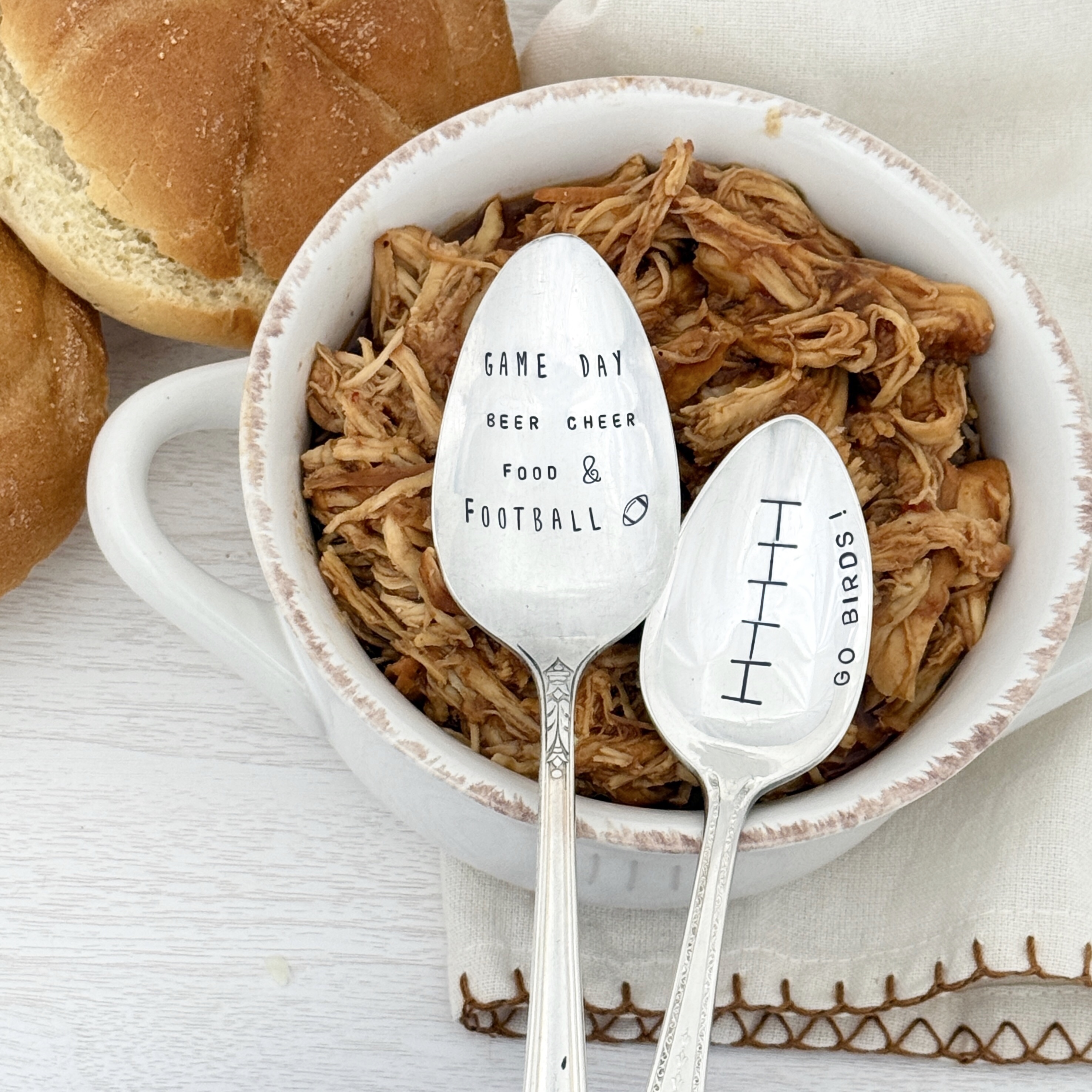 This listing is for one "Game Day - Beer, Cheer, Food & Football" serving spoon. Coordinating tableware is available in the shop, please stop by and take a peek - ProseAndPolish