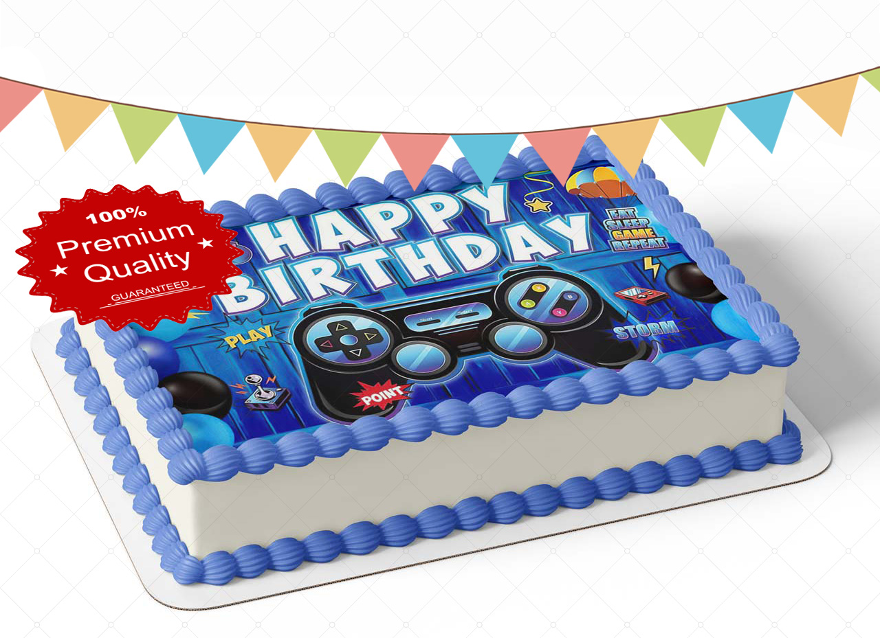 Game On Gamer Level Up Controller BR Game Over Unlocked Edible Image Themed Edible Birthday Party Cake Topper Sheet Edible Sticker Decal