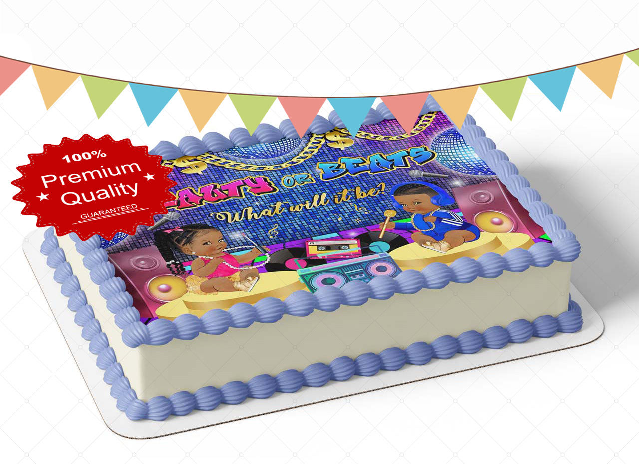 Gender Reveal Beauty Or Beats Edible Image Themed Edible Birthday Party Cake Topper Sheet Edible Sticker Decal