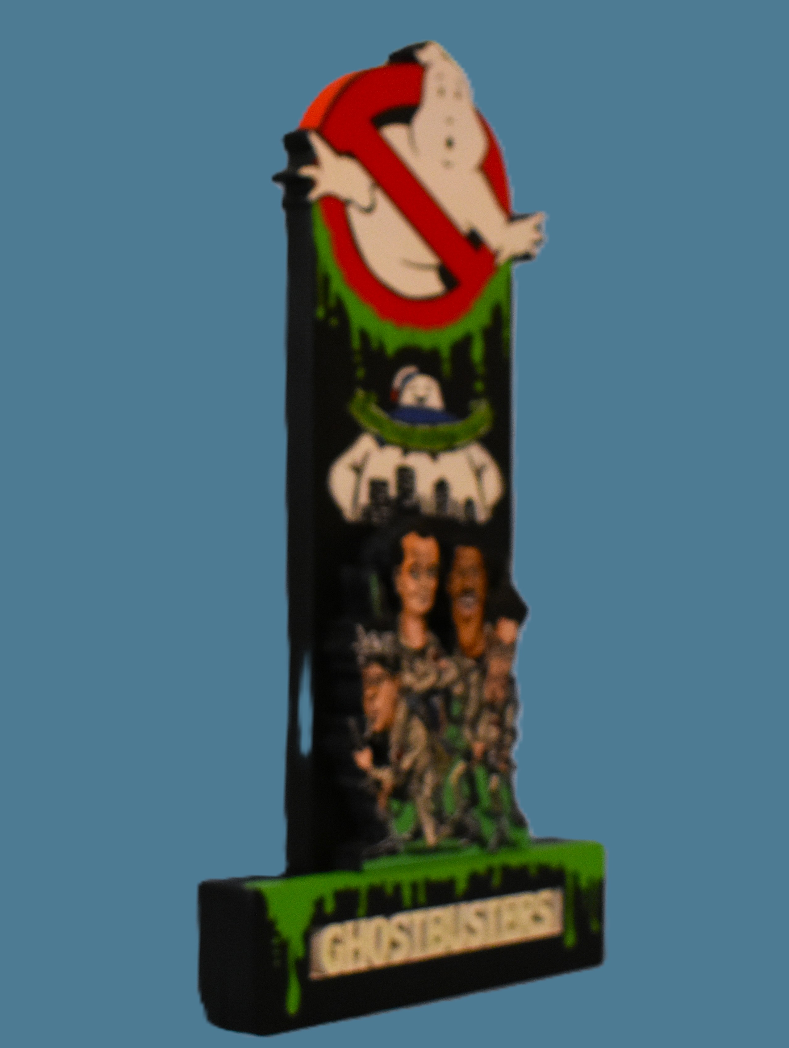 Crafted from high-quality 100% Poplar Board Wood, this exclusive piece features a hand-carved and hand-painted design that showcases the beloved original Ghostbusters characters.