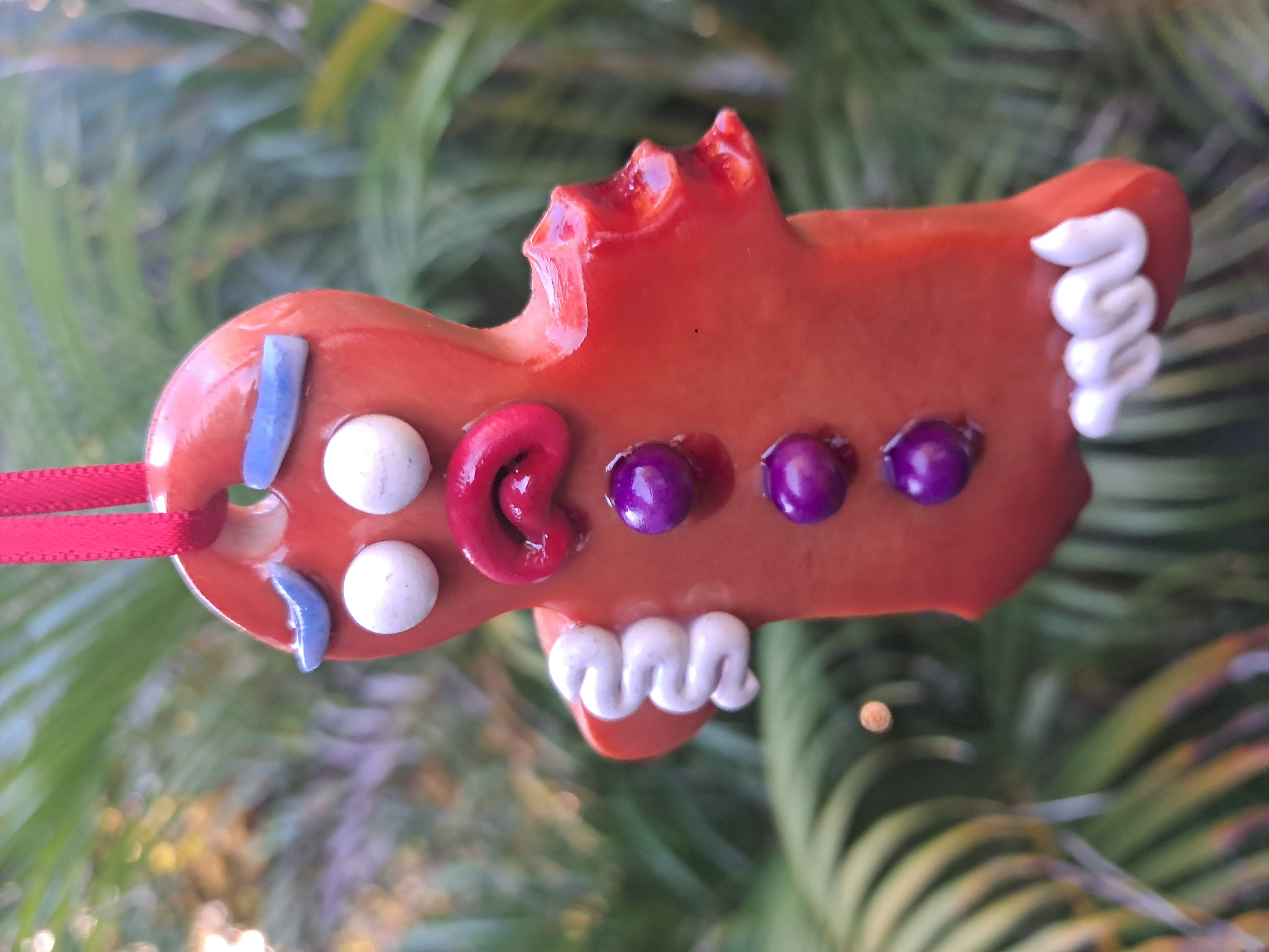 Each ornament is hand-sculpted from high-quality polymer clay, baked to perfection, and finished with a glossy glaze and candy-style resin “blood” for that deliciously creepy look.