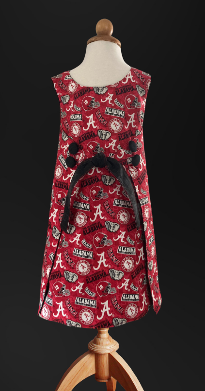 Girl’s Dress. Size 6 Girl’s Wrap/Popover Dress in an attractive University of Alabama football print, lined in black. Pair with an attractive turtleneck top and tights for cooler weather.