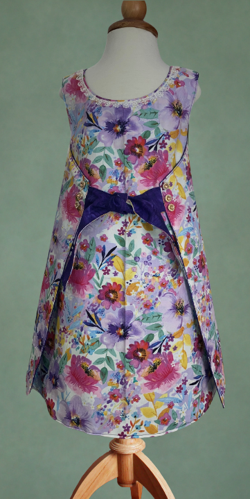 This beautiful dress was inspired by the fashion trends of the 1960s but the origins go back to the early 1940s in a dress called the popover. It's popularity at the time led to it becoming a staple of the American Look. Because we use quality fabric and outstanding construction, this dress represents not only enduring fashion, but a responsible and eco-friendly approach to clothing your children. While clothing made for big box stores will soon see landfills, my garments, properly cared for, can satisfy the clothing needs for many children over time.