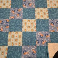 Cotton material was used for the twenty-five 7" squares for the front and one solid piece for the back to include batting for the quilt.