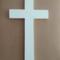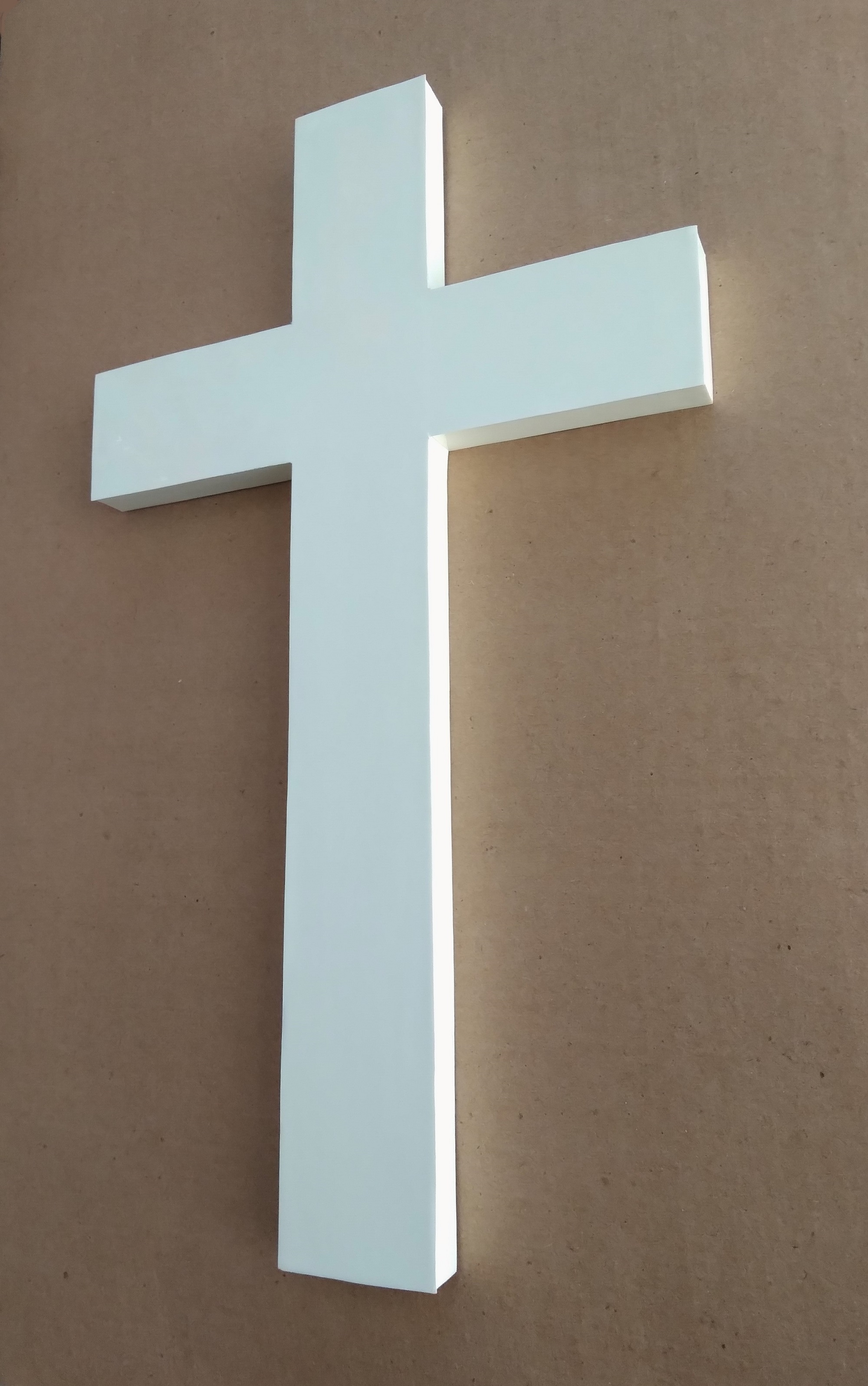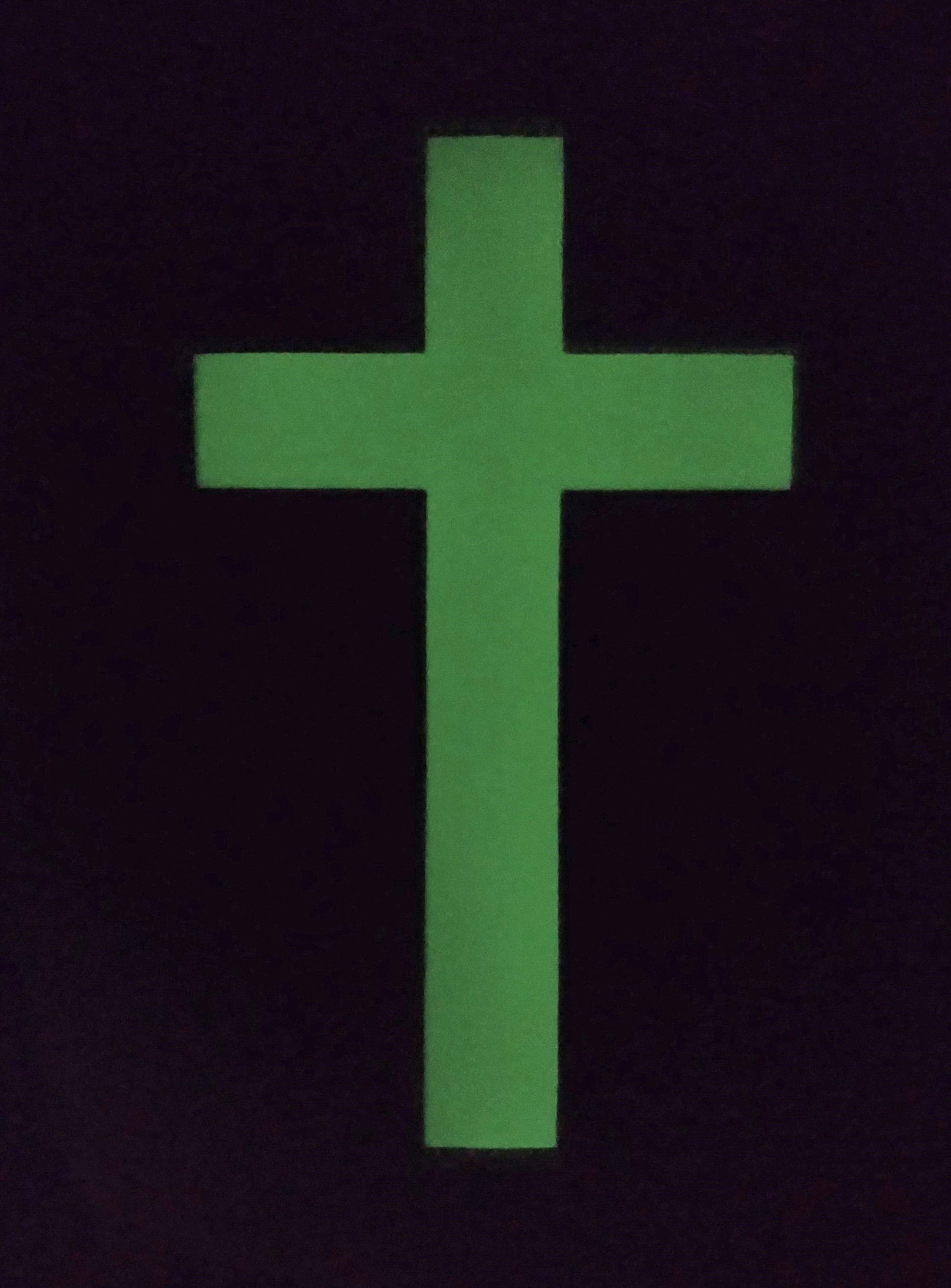 Glow your faith! This glow in the dark wall cross is a white shiny vinyl by day and glows in the dark at night. Soothing at bedtime, prayer time or a glowing time of low light worship. It has a light greenish glow that lasts approximately 30 minutes, depending on the amount of lighting that was on it. It can be easily recharged with more lamp light or sunlight. A cell phone flashlight will even give it a glow boost to continue the fun and comforting glow of faith. Available in 9.5" x 5.5" or 12".x 7.5" The backside is painted white and has a hook for hanging. Handmade to order..please allow 5-7 business days to make and ship.