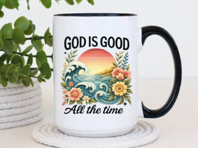 Embrace daily inspiration with our Bible verse mug featuring the empowering message, "God is good all the time". This Christian mug is perfect for starting your day with faith and encouragement inspiration. You also have the option to add a ceramic coaster.