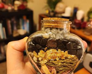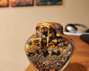This 5 oz deity altar jar is filled with things that Aine would find pleasing, such as Meadowsweet, rose petals and gold leaf, and has been extensively researched to be the best it can be.
