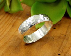 This Hammered Domed Band has been formed and textured by hand from half round wire. Polished to a high shine, this makes for a nice, simple ring for everyday wear.
