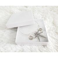 This bracelet includes a simple Snowflake charm with rhinestones. It is gold plated over stainless steel. The jewelry is adjustable allowing it to fit most wrist sizes. This bracelet is 100% lead and nickel free. It measures 2.5 inches by 2.5 inches before the adjustments. This amazing and simple snowflake bracelet is the perfect gift for someone who loves winter or who loves snow. It can be worn for festive celebrations. It is a perfect gift for a minimalist.