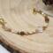 At the center is a clear faceted glass bead that catches the light beautifully, adding subtle sparkle without overpowering the design. The neutral color palette makes this bracelet perfect for everyday wear while still feeling special enough for dressier occasions.