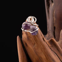 This ring is created using Goldstone mixed with a bit of Blue Goldstone and antique copper color wire wrapping. I hand twist and turn the wire into whatever shape "happens". The fun part about that for YOU is that no one else will have one exactly like it, because one of a kind treasures is my specialty. I do use jewelry tools for the finishing touches, as I want everything tucked in for a smooth feel and with no snagging while wearing your special creation.