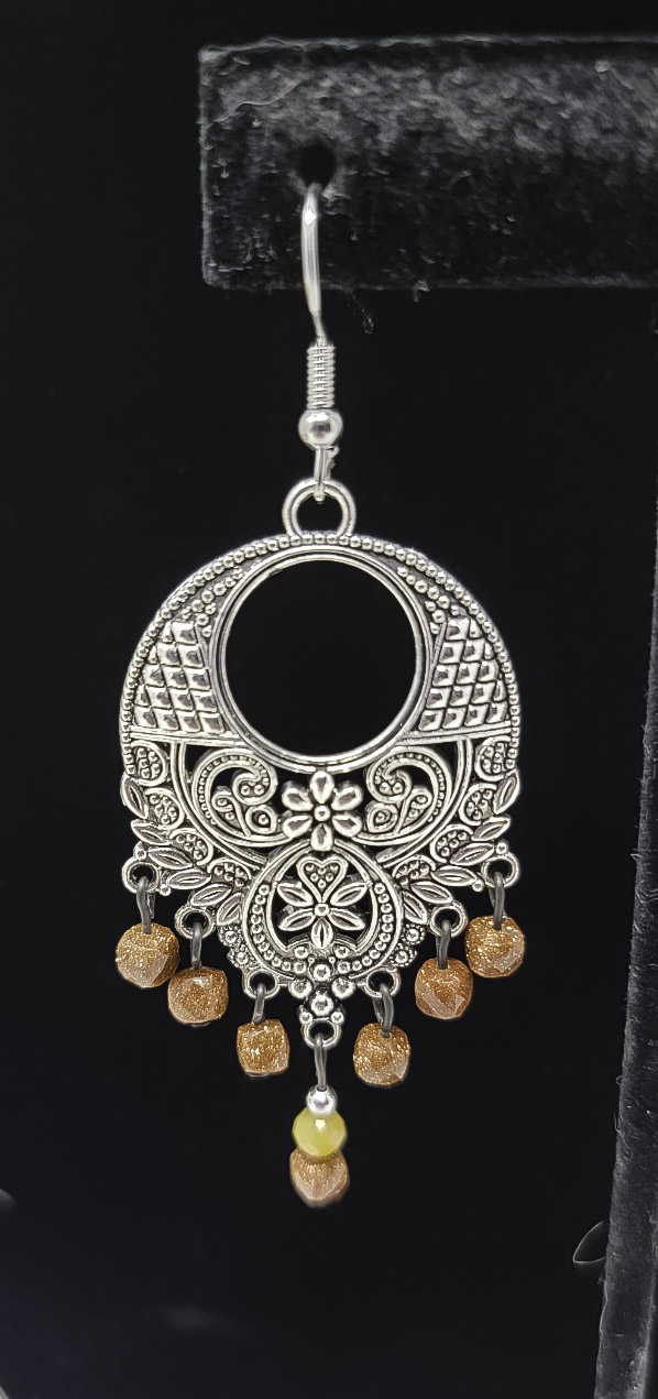 These Wayward Sparrow Studio earrings are a stylish choice for those who love unique accessories. Made from silver-plated brass with Gypsy Goldstone and Yellow Jade, they offer a beautiful and elegant look. ?