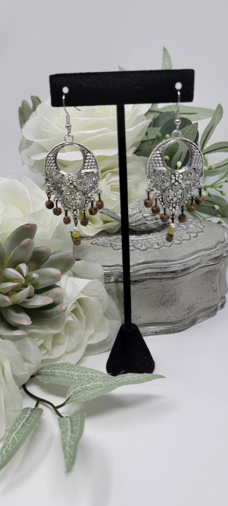 Hi, I'm Nicole Long, creator and designer for Wayward Sparrow Studio. The origin story started in 2010 when I took my first wire wrapping class. The instructor called my designs wayward in nature. From that moment on, I wanted to create one-of-a-kind pieces of jewelry and art. My father Master Glassblower Phillip LeJeune lends a hand by creating unique glass pendants for my studio.