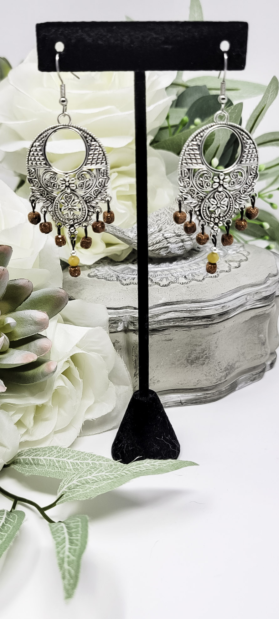 Material: These earrings are crafted from silver-plated brass, ensuring a sleek and elegant finish. ?