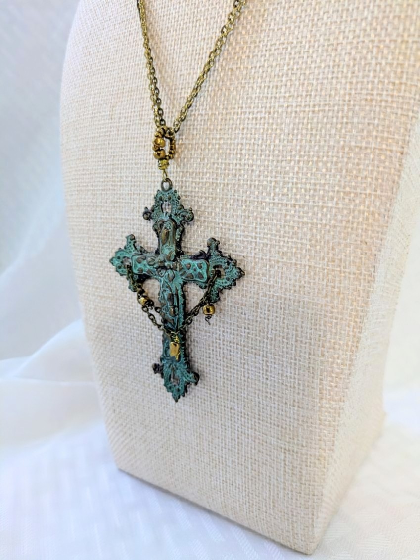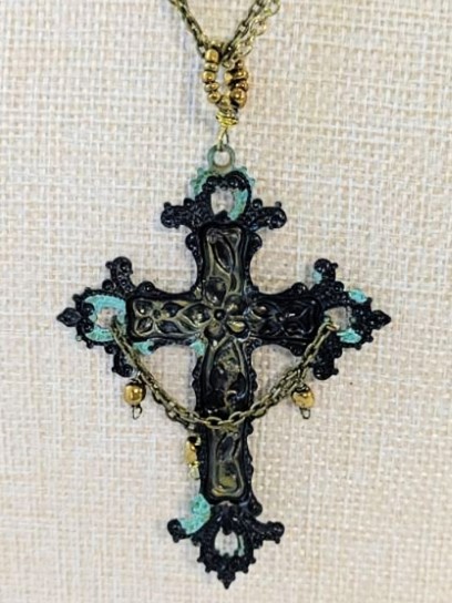 Gothic Style Brass Patina Cross Pendant from Have Faith.
