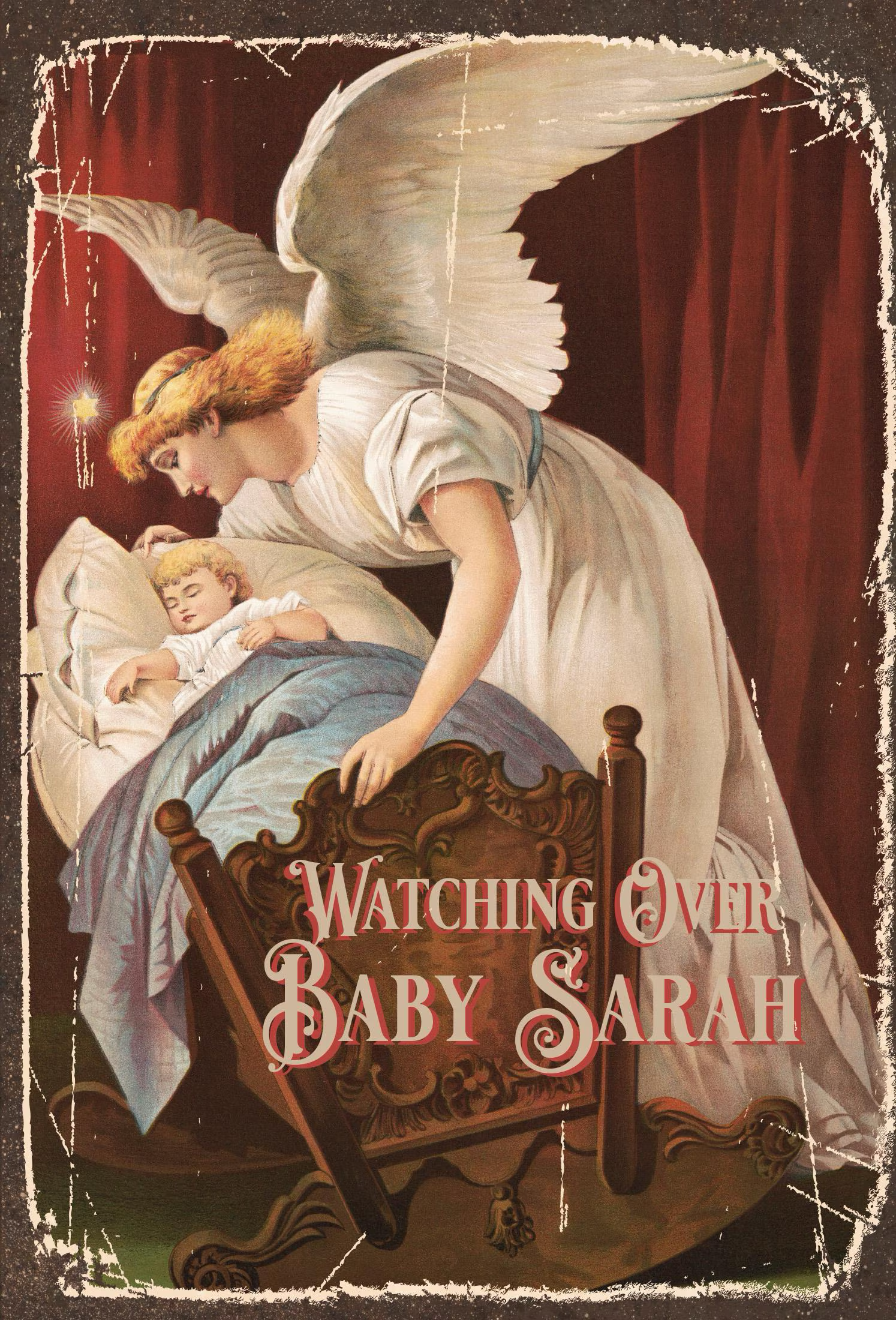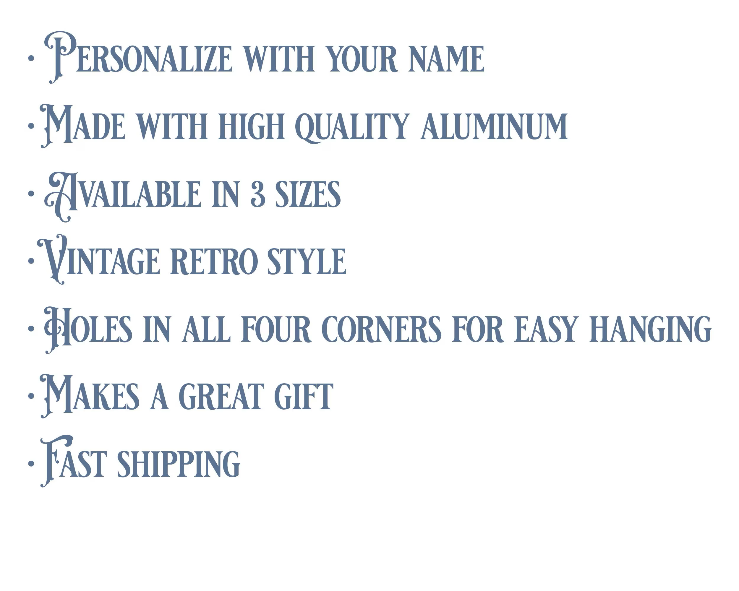 Personalized Angel Sign. Vintage Retro style aluminum sign. Add your precious baby's name to this sign. Who wouldn't love it? The color is cream and red with a vintage illustration of an angle looking over your baby. The angel's whisper (1894), vintage chromolithograph. Original public domain image from the Library of Congress. The sign is new but made to look aged. Holes in all four corners are perfect for hanging. We recommend using it indoors in a baby room kitchen or den. Makes a great gift. Available in three sizes: Small 11.75 x 7.75 , large 13.75 x 12 or x-large 12 x 17.75