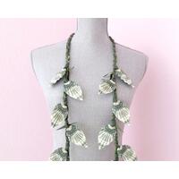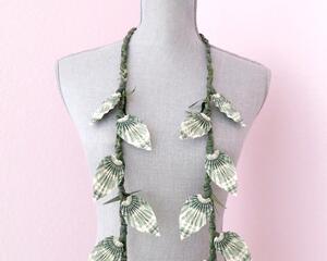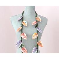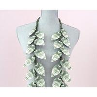 This money lei is created with 30 $1 money leaves and braided artificial leaves. The length of the lei is roughly 65" and each money leaf measures 3 ½”.