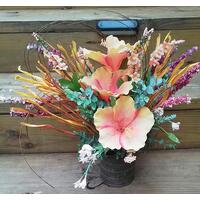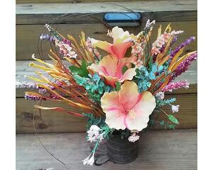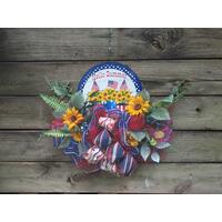 Texas hand made 14 inch grapevine accented with pink and purple succulents. Multicolored bow.
