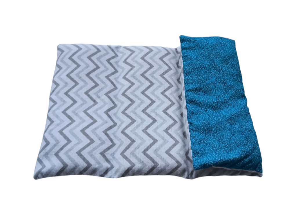 This lap-sized gray and white Chevron rice pack is a versatile and comforting solution for both hot and cold therapy. Designed with a durable fabric featuring a subtle yet elegant patriotic pattern, it provides soothing relief for sore muscles, cramps, or simply to keep warm on chilly nights.
